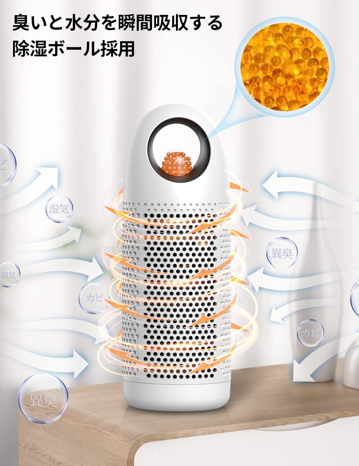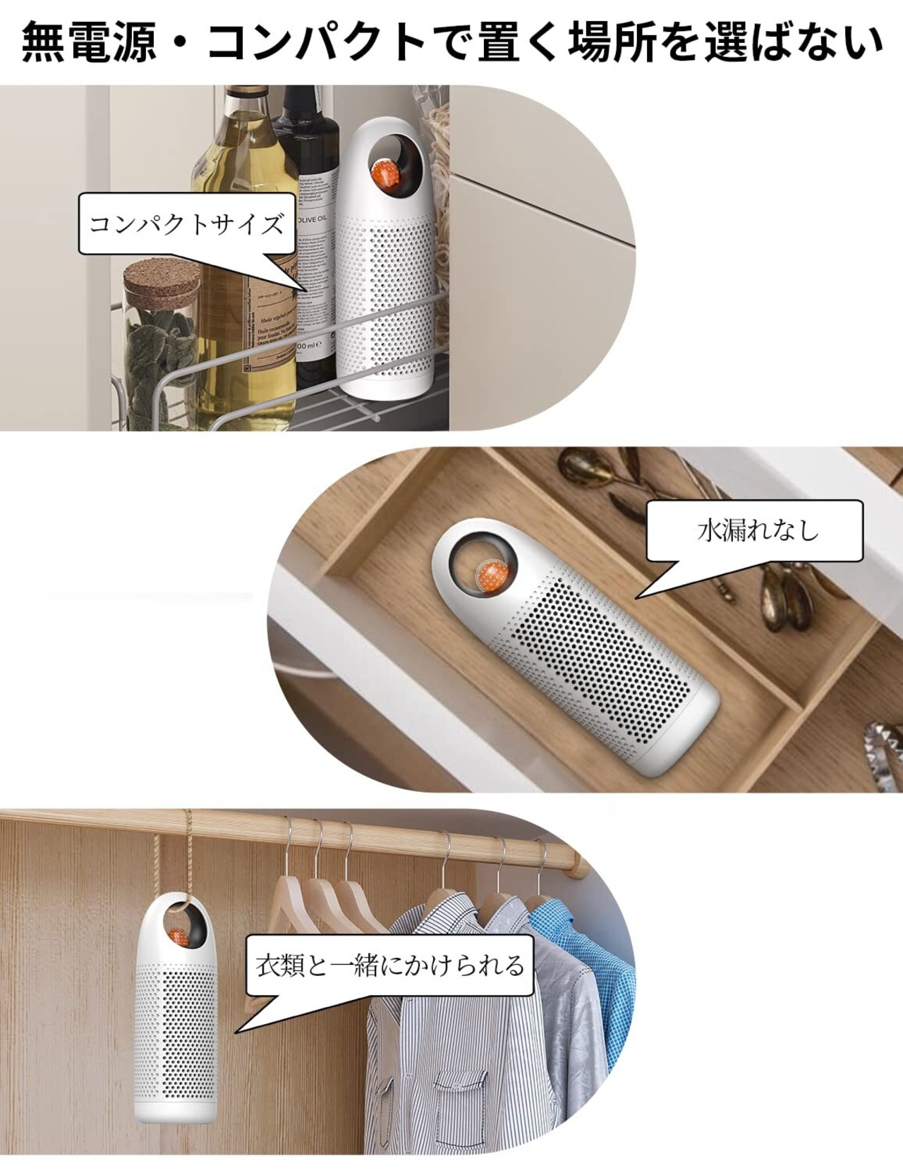 【除湿&消臭で一石二鳥】シリカゲルボールは数千万個の極々小さいホールで満たされいて、水分子をしっかり掴んで、強力に除湿を達成します。 さらに、消臭効果のあるシリカゲル内蔵で、除湿&消臭がこれ一台で実現。