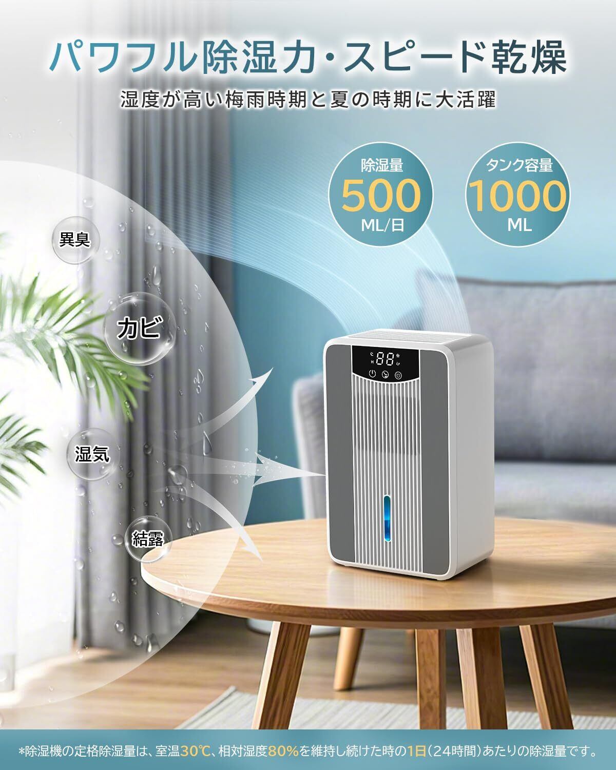 除湿機 小型 省エネ 除湿器 1000ml大容量 コンパクト 卓上 静音 じょしつき 狭い空間向け 4-24時間タイマー付き 梅雨対策 2段階稼働モード 節電 部屋干し 湿気取り 最新ペルチェ式除湿機 満水自動停止 自動除霜機能 脱衣所 押入れ 寝室 下駄箱 クローゼット トイレ(White)