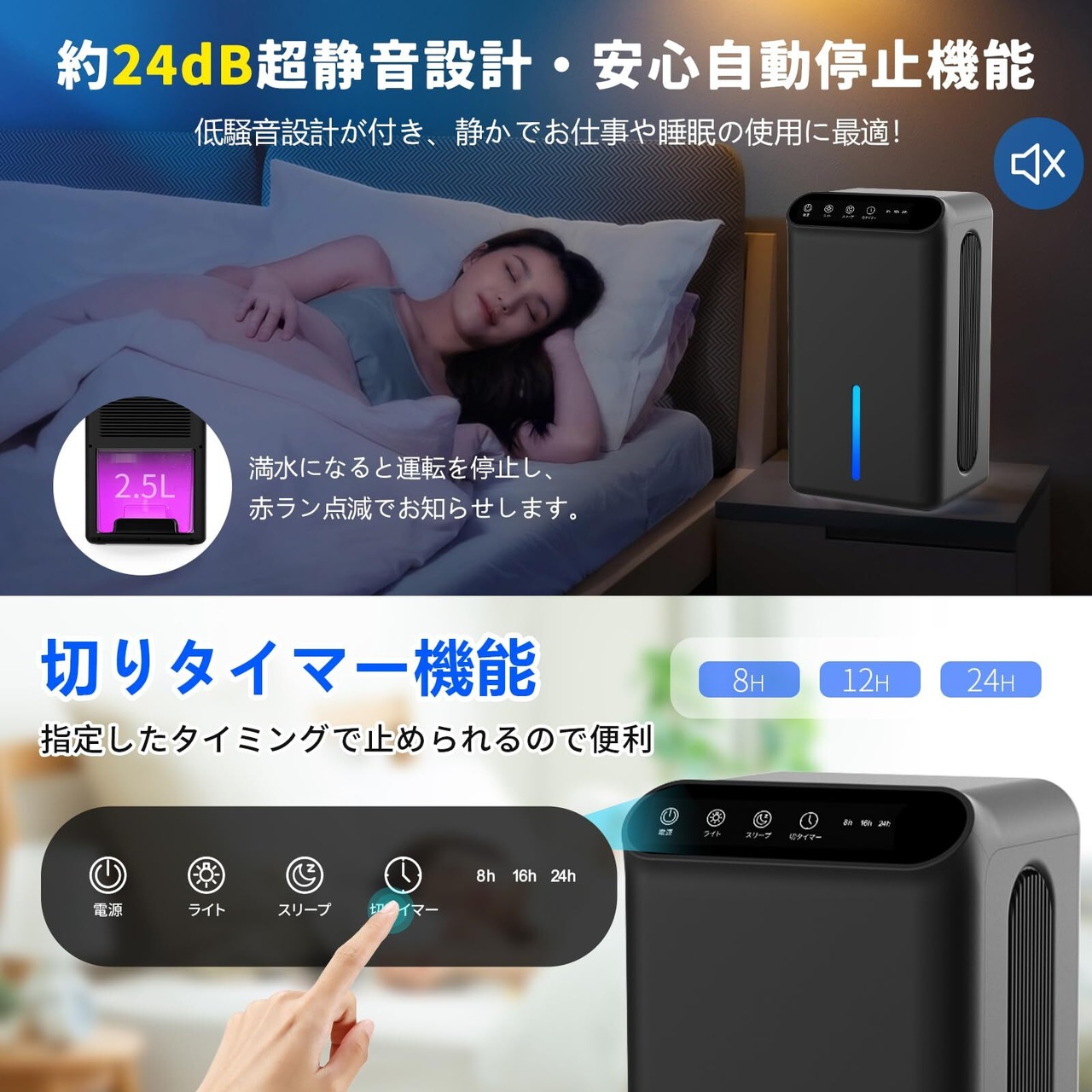 ①除湿機・空気清浄機一体型 ②强力除湿 ③大容量2.5L ④24時間タイ… 表示を増やす