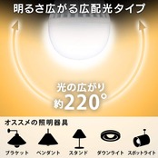 白熱電球のように広範囲に明るい広配光タイプなので、トイレや階段などの照明に最適なLED電球です。
