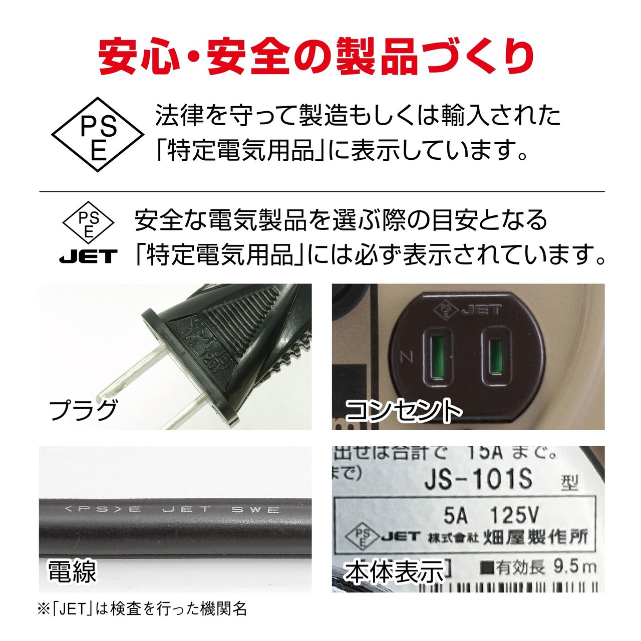 ハタヤ (HATAYA) コードリール 小型 コンパクト 屋内用 100V型 コード10m 太さ2.0㎟ 標準型 温度センサー内蔵 (電線溶解防止機能) コンセント4個 コンセント防塵シャッター 家庭用 工場用 建設現場 軽作業 JSリール JS-101S