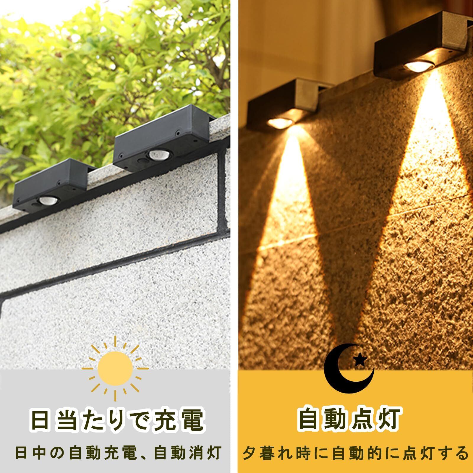 MY KOZARU ソーラー 屋外 フェンスライト ガーデンライト屋外 ソーラー 表札灯 表示灯 玄関灯 門柱灯 LEDガーデンライト 屋外防水 取付簡単 庭 階段 通路 バックヤード 玄関等に適用 (4個、電球色式、ソーラー式)…