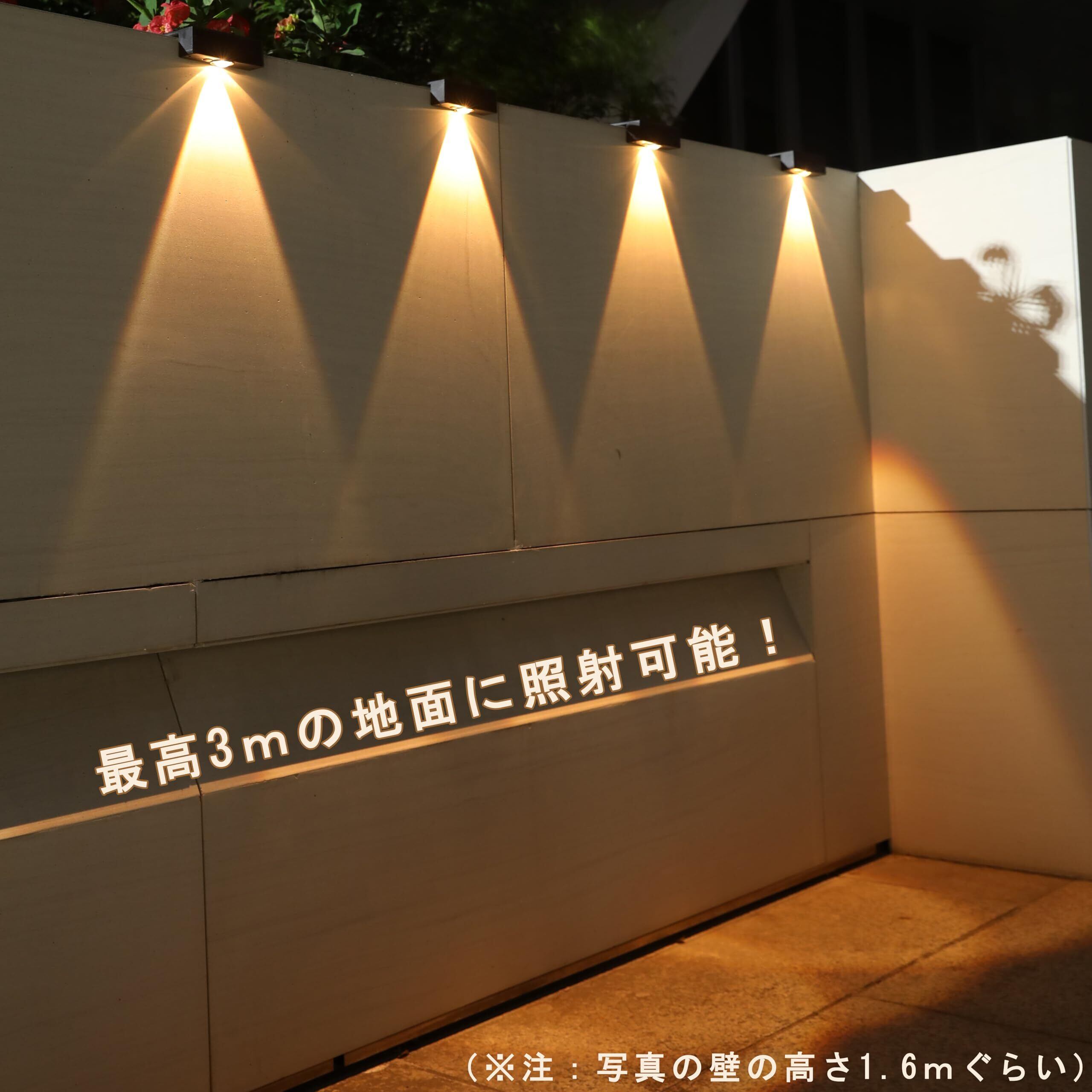 「最高3mの地面に照射可能」明るいledと凸面レンズを使用して、最高3mの地面に照射可能。 明るい光はウッドデッキあるいは壁面に沿って滝のように降り注ぎ、美しい光の輪を作り出します。複数のライトを一緒に使えば、光が重なり、とてもおしゃれな雰囲気になります。