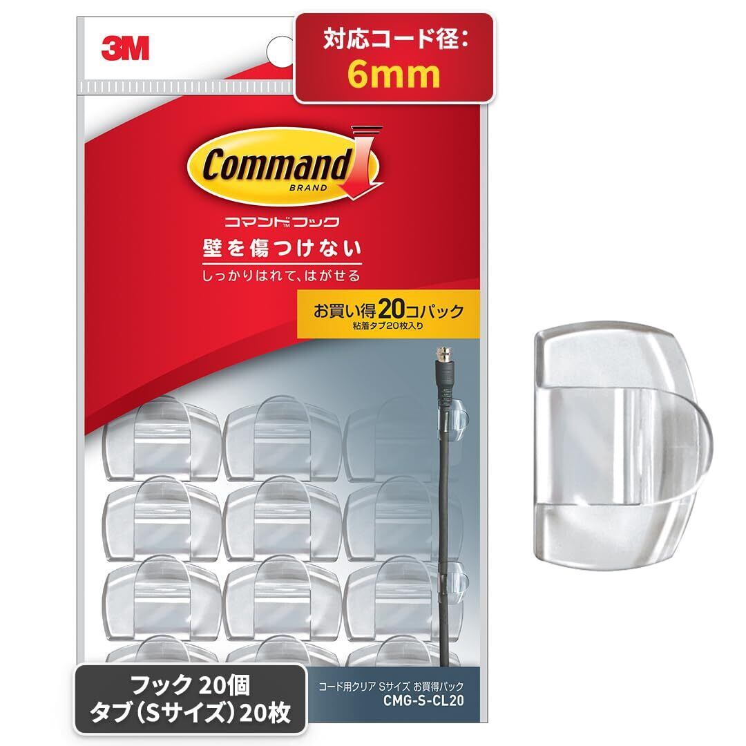 3M コマンド フック ケーブルクリップ 配線止め クリア Sサイズ 20個 CMG-S-CL20 コードクリップ コードフック まとめる