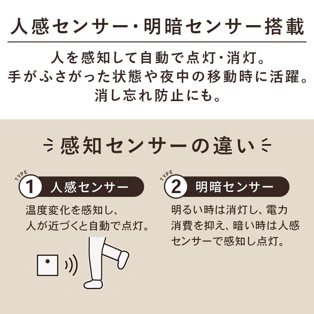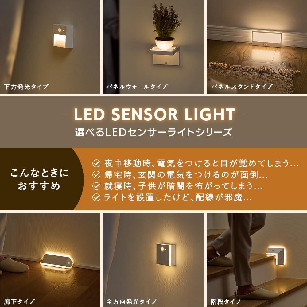 【こんなときにおすすめ】夜中移動時、電気をつけると目が覚めてしまう。/帰宅時、玄関の電気をつけるのが面倒。/就寝時、子供が暗闇を怖がってしまう。/ライトを設置したいけど、配線が難しい。