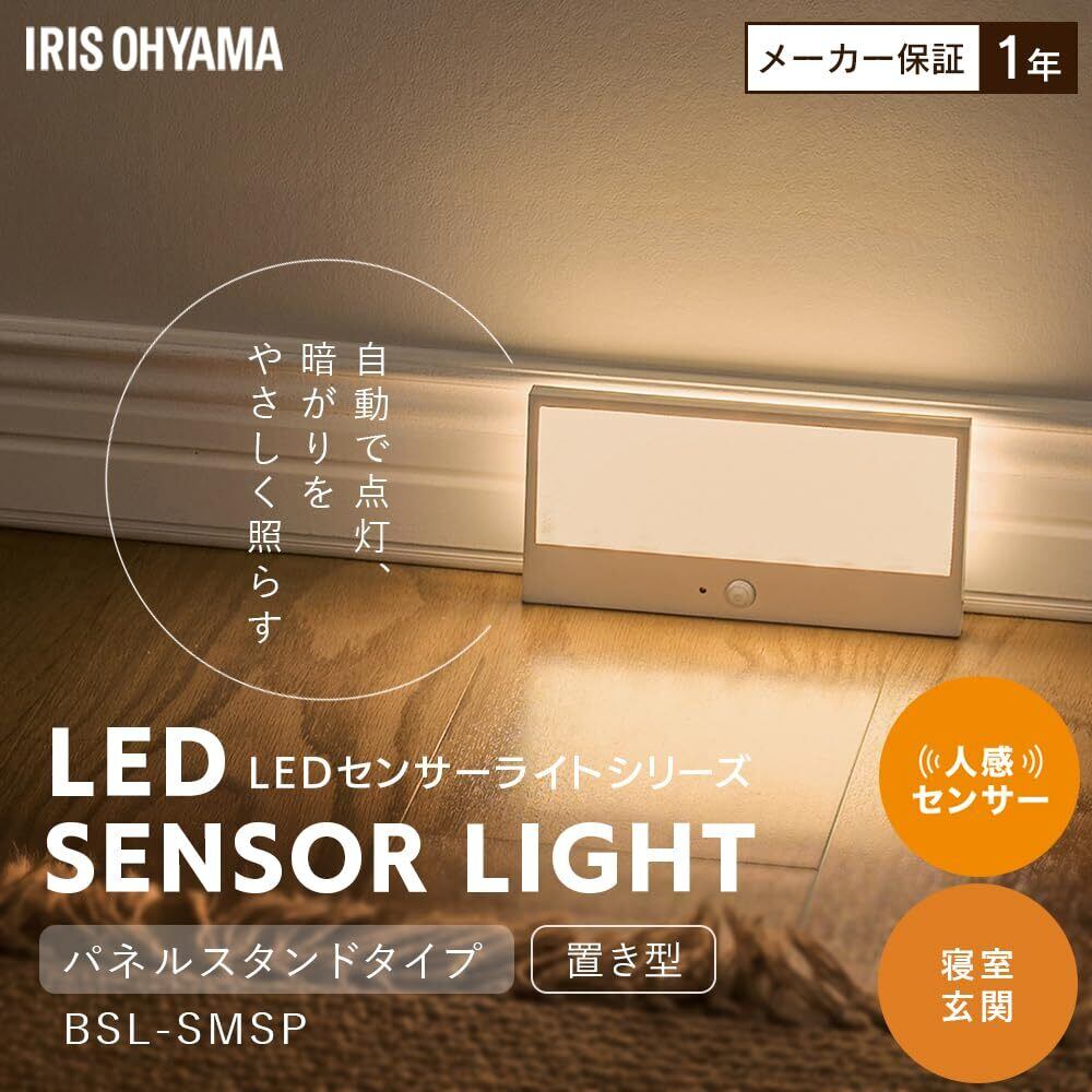 アイリスオーヤマ 乾電池式LEDセンサーライト パネルスタンドタイプ 置き式 自動点灯 常時点灯 BSL-SMSP