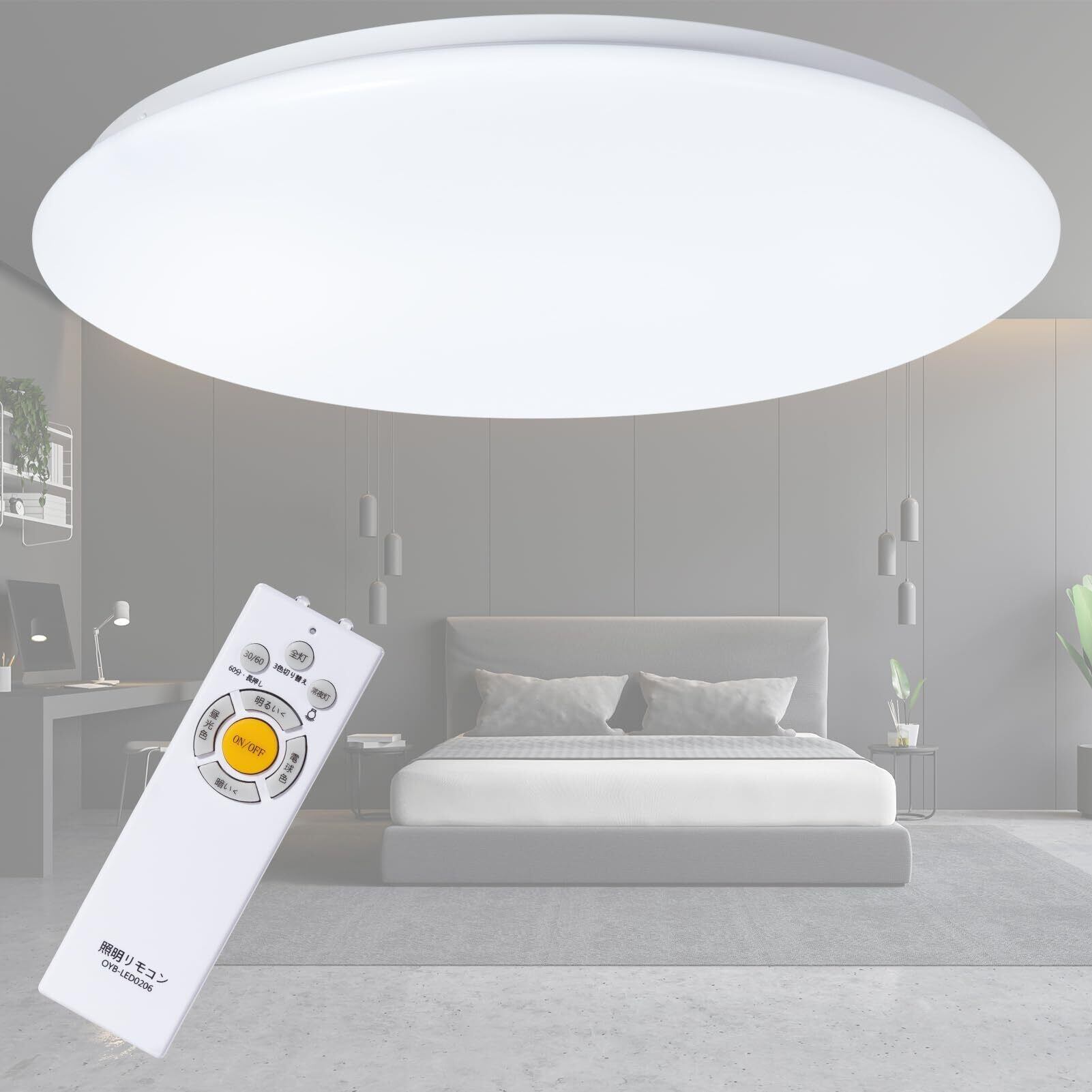LEDシーリングライト 8畳30W(最大36W) 4800LM 天井照明器具 おしゃれ 蛍光灯 調色/調光タイプ 昼光色 電球色 リモコン付き 調光タイプ LEDライト 豆電球常夜灯モード メモリ機能 30分/60分スリープタイマー 玄関 寝室 和室 台所 洗面所