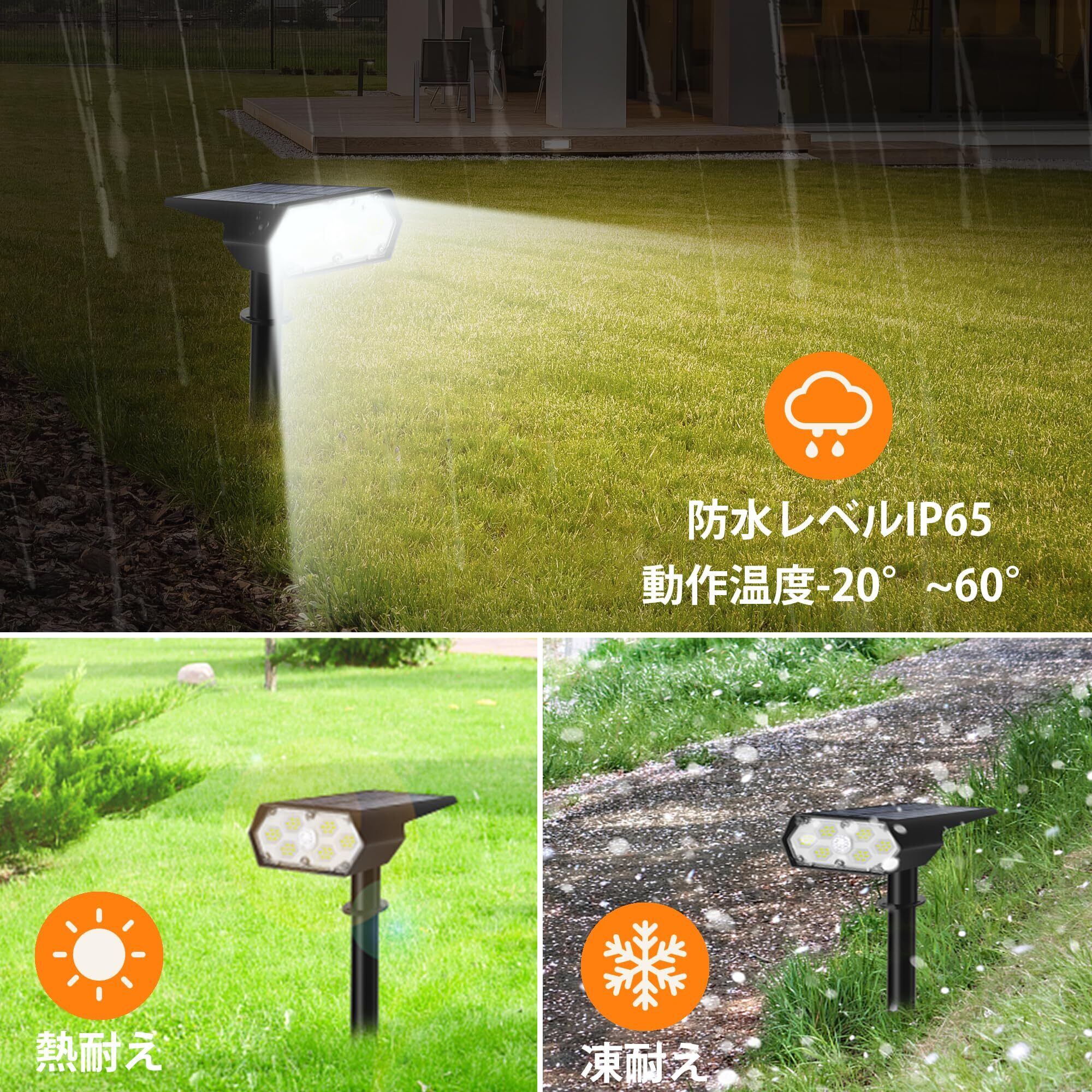 【IP65防水仕様・耐久性】ソーラーライトには高い耐久性のABS樹脂を採用しており、IP65の高防水性を待ち、ステンレス304ネジ採用で錆の心配がなく、悪天候でも安心してお使いいただけます。太陽光の変換効率が高い(22%)高品質ソーラーパネルを採用し、日中の太陽光でしっかり充電され、電気代もかからず省エネでエコ!
