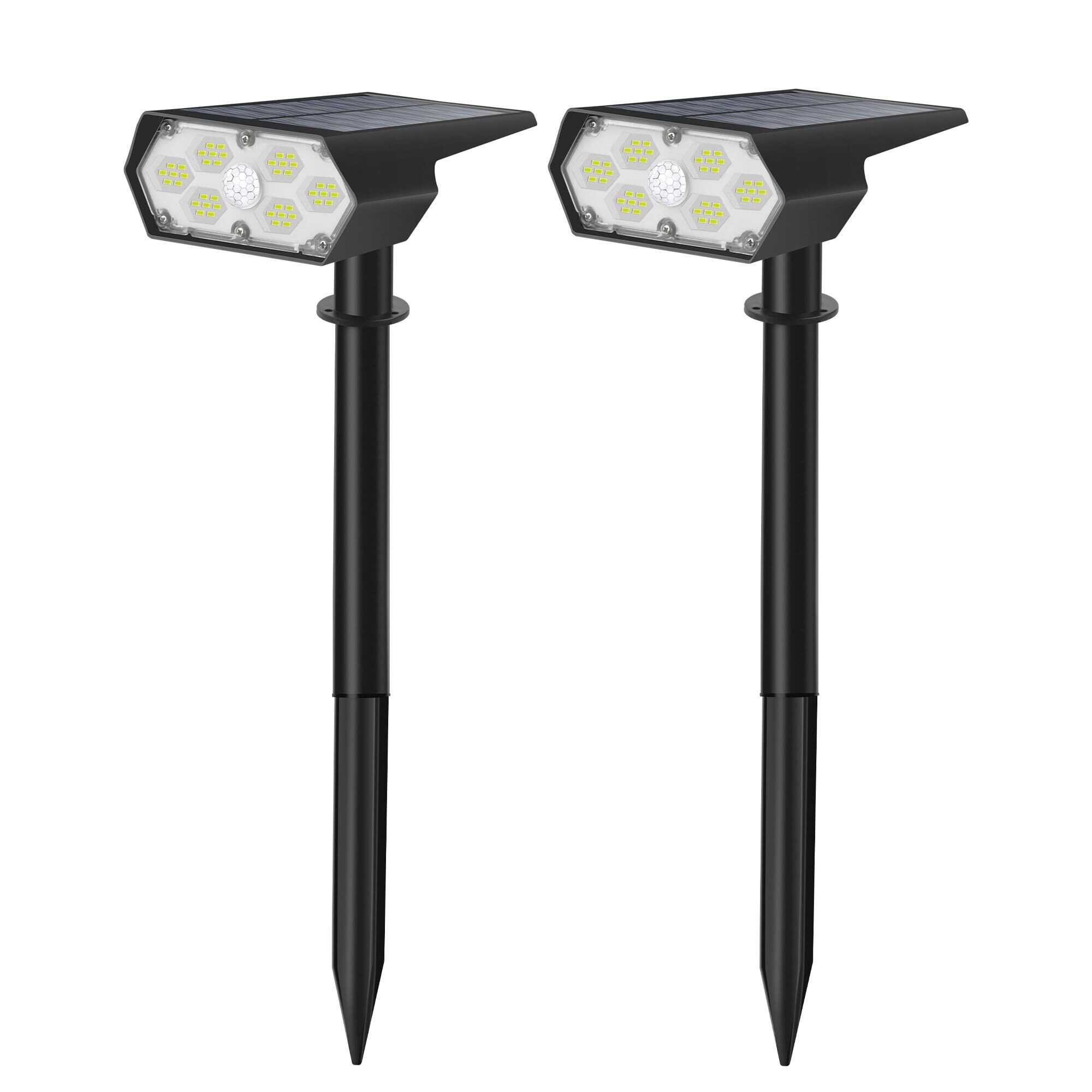 ソーラーライト 屋外 人感センサー ガーデンライト スポットライト イルミネーション 2200mAH 42LEDs 昼光色 防犯防災 IP65防水 玄関 庭園 歩道 車道 駐車場 照明 2個セット