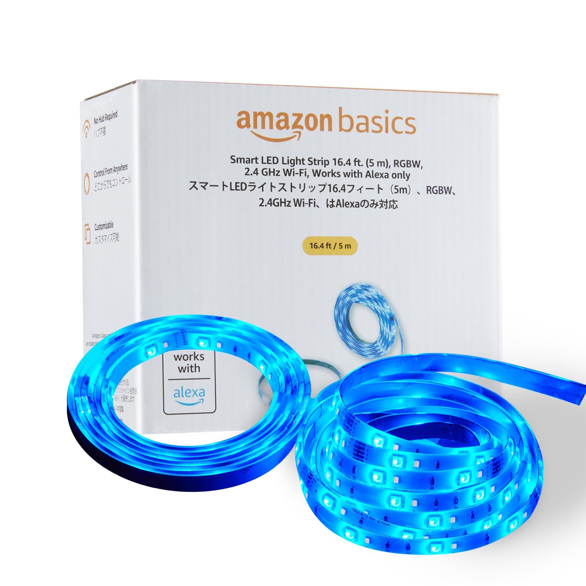 ベーシック スマートLEDテープライト 5m Alexa搭載デバイスで作動 調光調色 マルチカラー GBW 2.4 GHz Wi-Fi