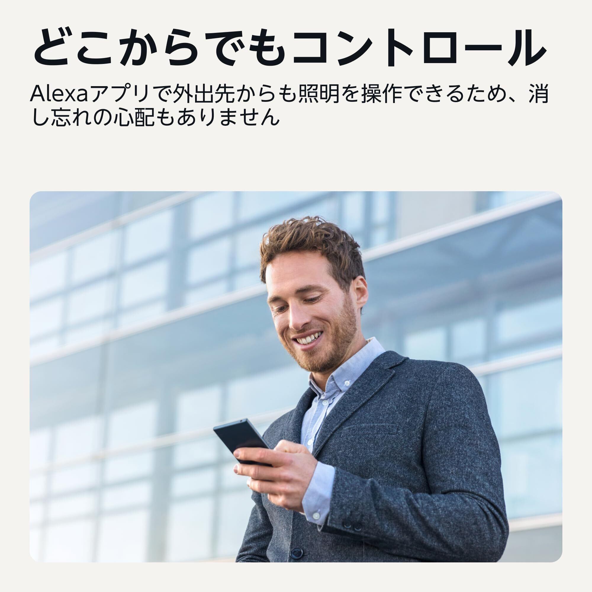 【グループ制御】 Alexaアプリでグループを作成して照明を組み合わせると、音声コマンド/アプリ一回の使用で、部屋ごとの照明・家のすべての照明を制御できます。寝る時間になったら、”アレクサ、寝室の電気を消して”と話しかけて電源をオフにすることも、Alexaアプリで寝室の照明を一気に消すこともできます。