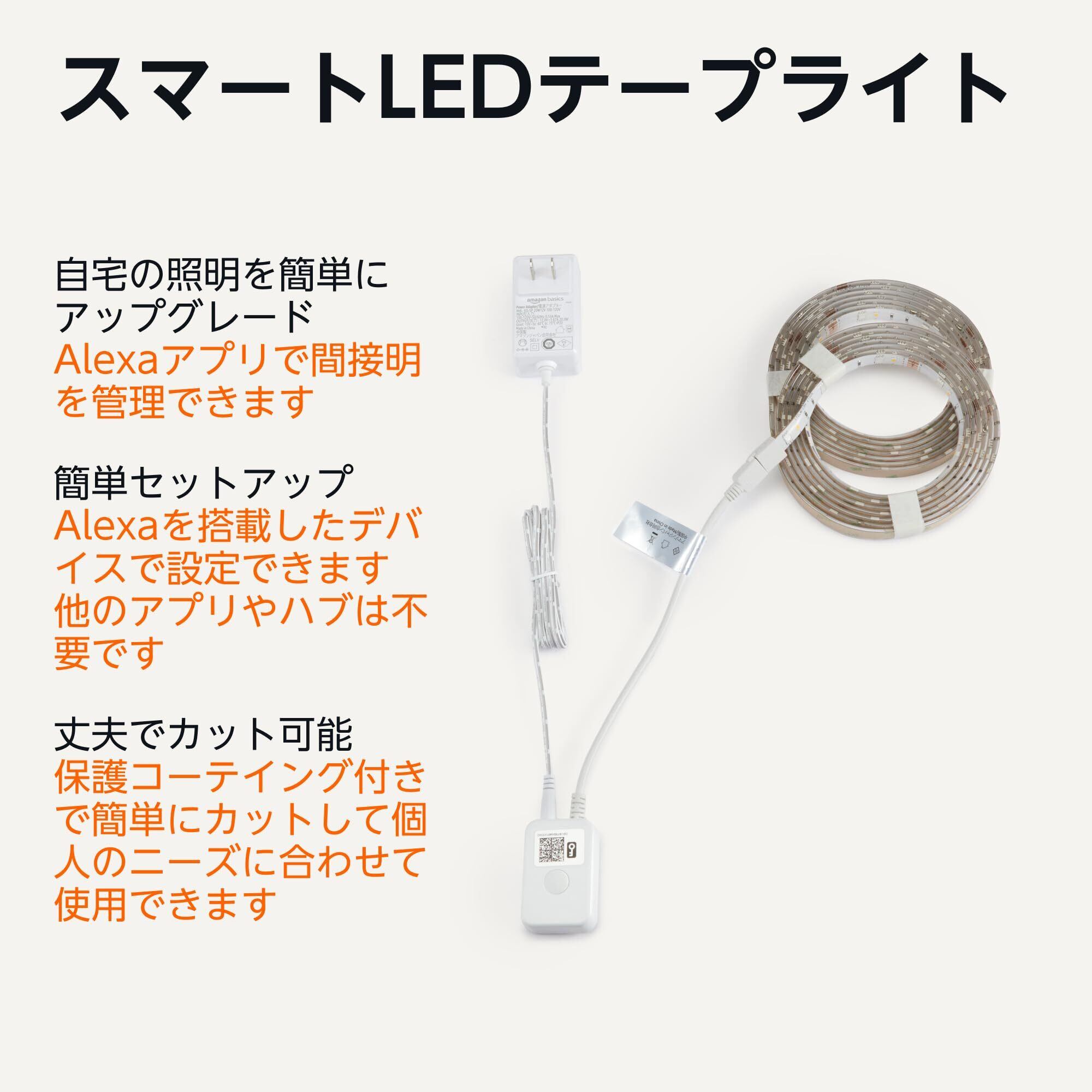 【Alexaアプリで簡単セットアップ】 注文時に「デバイスをアカウントにリンクする」を選択できるゼロタッチ登録を含む複数の設定オプションがあり、登録に他のアプリは必要ありません。ご注意:ベーシック スマートLEDテープライトは、Alexaのみで動作し、Google Assistant、Apple HomeKit、Smart Thingsには対応していません。2.4GHz Wi-Fi環境のみでセットアップできます。