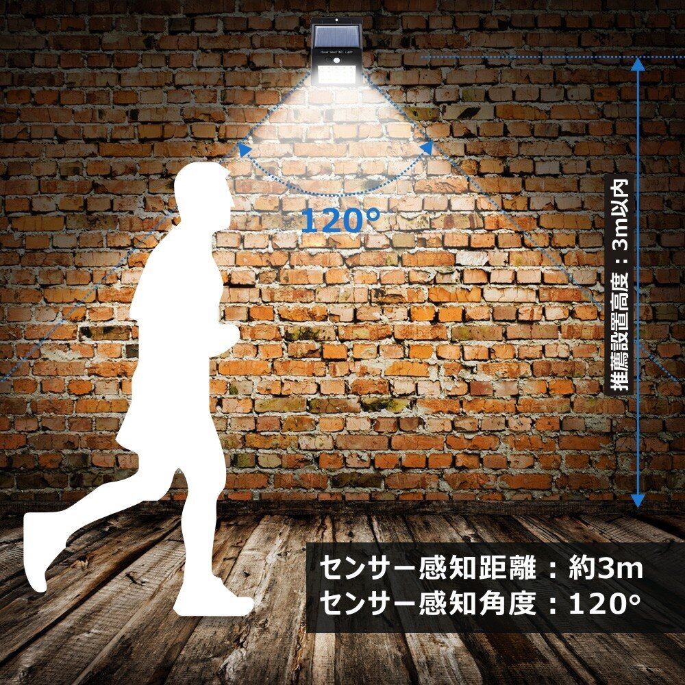 【環境に優しい太陽エネルギー・電気代0円】40LEDセンサーライトは最新版のソーラーパネルを採用して、昼間の太陽エネルギーを受けて、内蔵18650充電池には電源エネルギーに蓄積して、夜間LEDライトに電源を提供します。完全に太陽エネルギーを利用して、電気代が0!二酸化炭素の排出が0!家計に優しくて地球温暖化の対策です!直射日光の場合はエネルギー転換率は17%まで達します!ご注意:照明効果を確保するために、必ず遮るもののなく、昼ま長時間直射日光に当たる場所に設置してください。