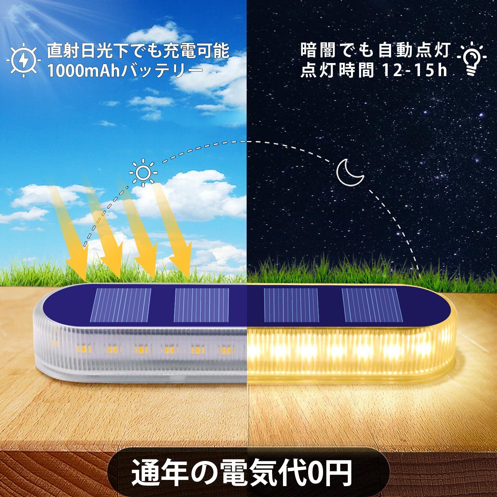 【連続点灯時間の長さ】 1000mAhバッテリー内蔵階段ソーラーライト、超大型蓄電式ソーラーパネル、太陽光で6時間以上充電、夜間点灯時間は最大12-15時間、夏から冬までほぼ一晩中途切れることなく照らします。