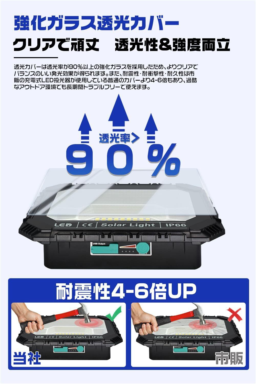 【HIKARI】LED投光器 充電式 200w 16800lm 16800mah 201チップ搭載 ソーラー&USB充電対応 マグネット付き 作業灯 高輝度5モード IP66防水 防塵 強化ガラス 非常灯 アウトドア キャンプ 防災用ライト スタンド収納可能 1個「A-BSC-PTGS-LED」