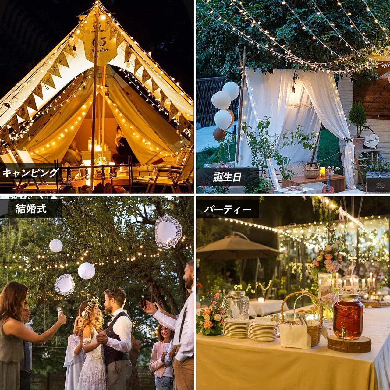 【様々なシーンで大活躍】これらの暖かい黄色の飾りライトをガーデン、壁、テント、コーヒーショップ、舞台などに手軽にご使用いただけます。クリスマス、新年祝い、 パーティー、誕生日、 結婚式、特に記念日やお祭り、告白の時等、様々なシーンで魅力的な光を提供し、ロマンチックな雰囲気を作り出すのに役立ちます。初期不良はいつでも無償交換・返品、開封使用後も30日間無償交換・返品対応致します。24時間以内対応させていだきます。ご安心してご購入ください。