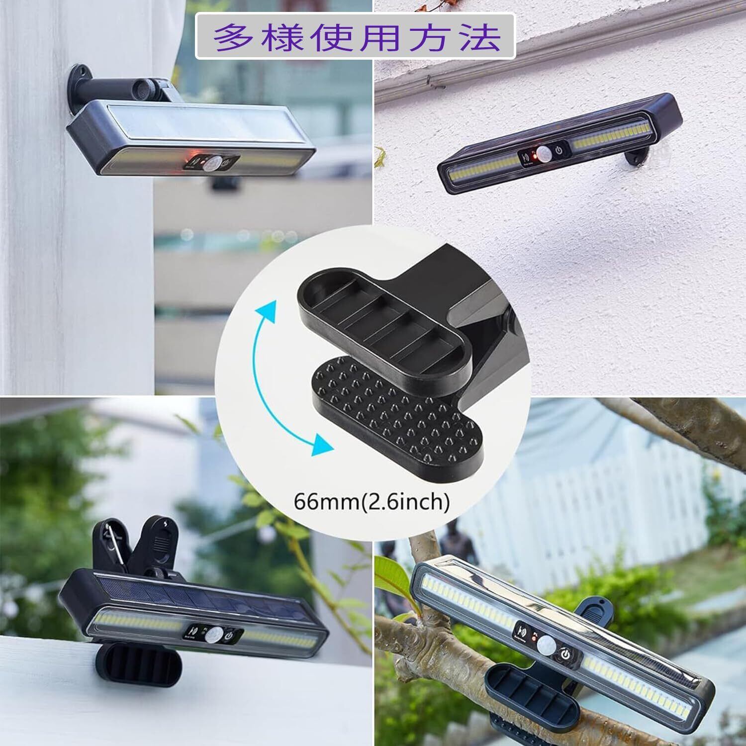 クリップ ソーラーライト センサーライト 屋外 電気代不要 3つ点灯モード 自動点灯 消灯 高感度人感センサーソーラー 防災 ガーデン/玄関/廊下/駐車場適用 停電 地震 津波 台風対策 (2)