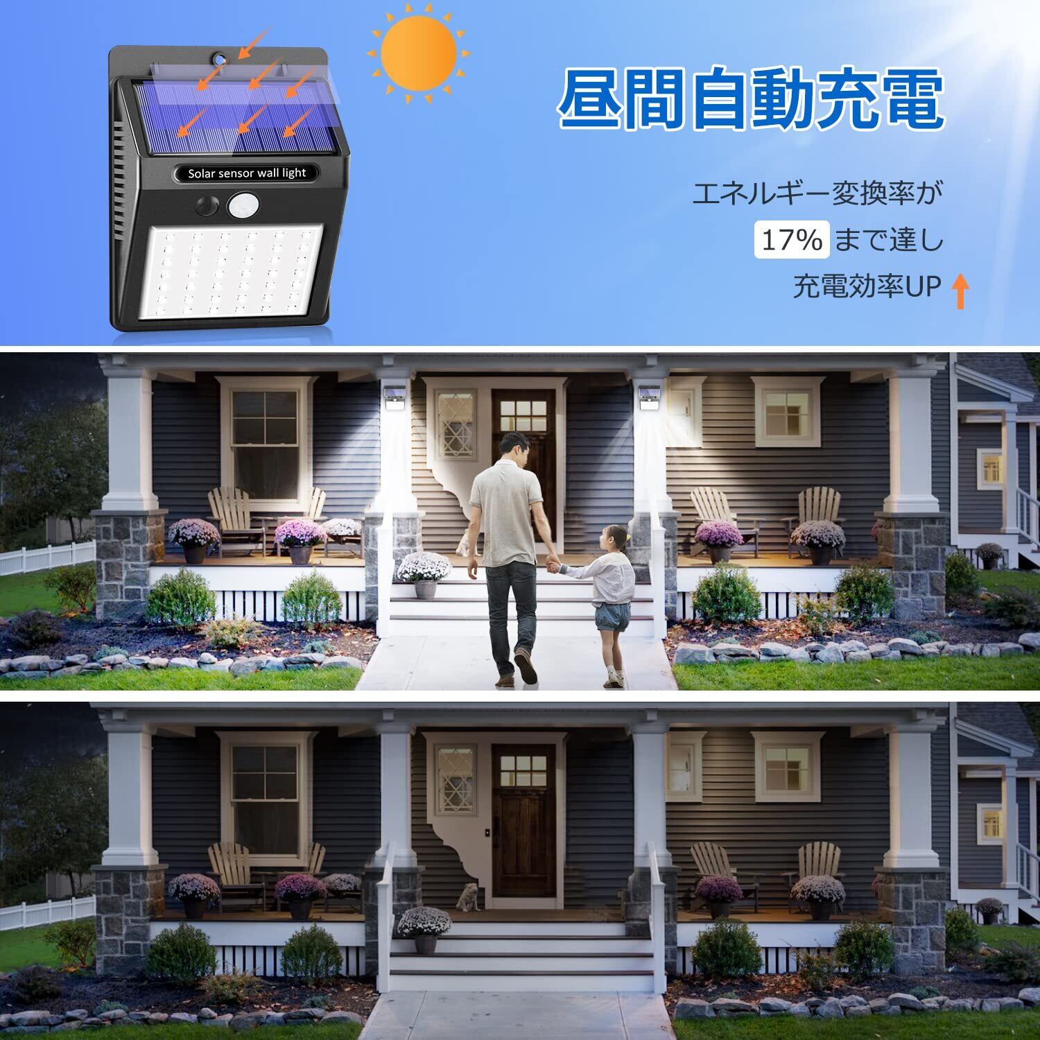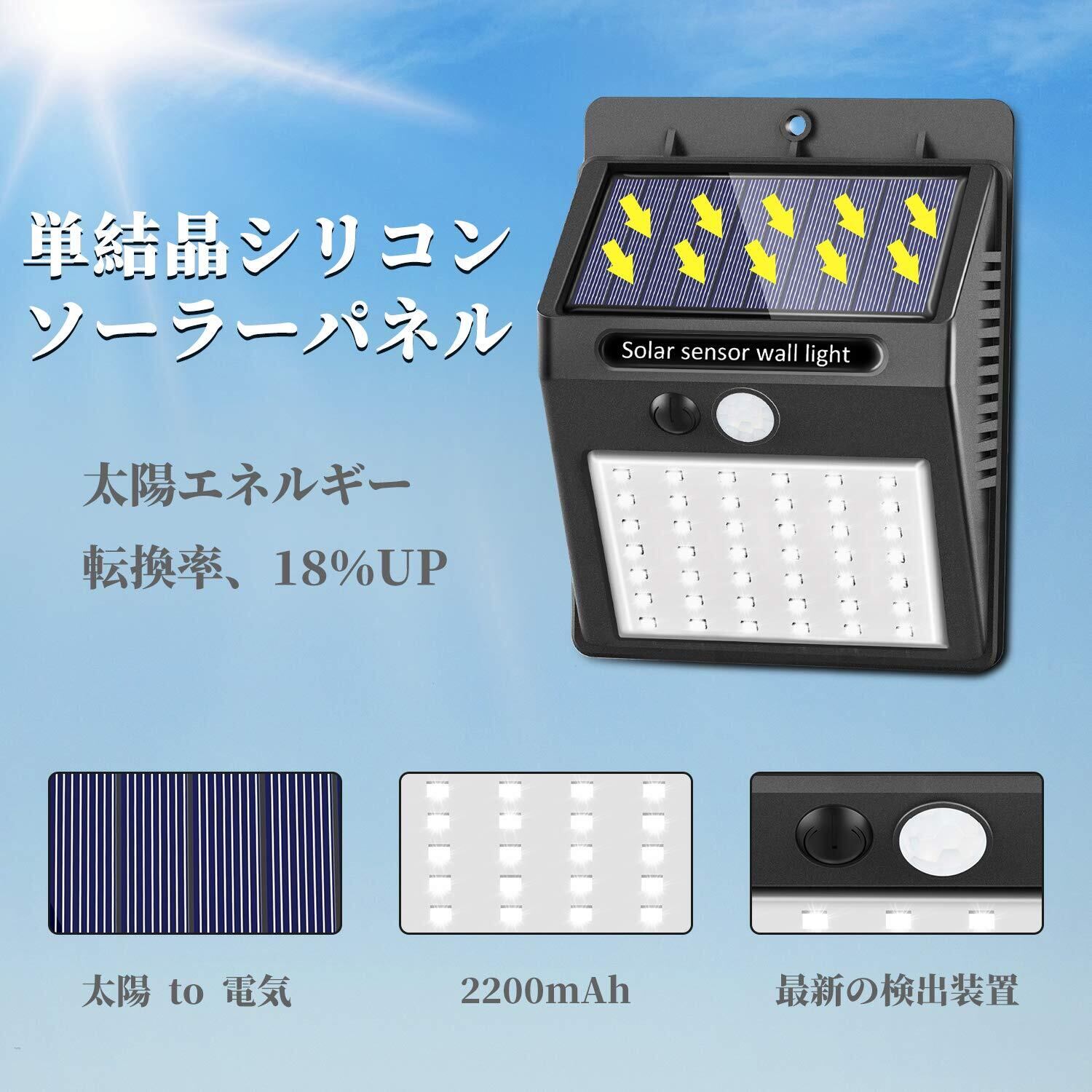 【省エネ・環境に優しい】ソーラーパネルは昼間で太陽エネルギーを吸収し、電力に転換し、転化率18%UP バッテリーに蓄え、 電気代不要だけではなく、二酸化炭素の排出量も削減できるため、環境に優しい。完全に太陽エネルギーを利用して、電気代が0!二酸化炭素の排出が0!家計に優しくて地球温暖化の対策です!完璧な停電対策、地震や台風などの災害で万一電源が停止しても照明機能を保ち、防犯や避難などに貢献します。