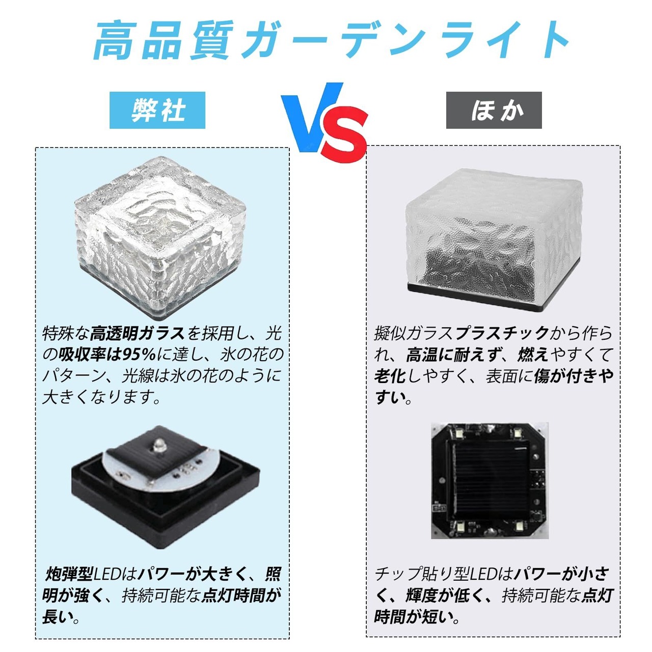 【設置簡単&広い適用場所】このガーデンライトはガーデン、玄関先、庭先、芝生、公園、車道、歩道防犯照明などの屋外照明とデコレーションに理想的な選択です。初めて使用時、底面の黒い防水ボタンをONに太陽の光りが当たる場所にご設置ください。正常に点灯するか確認できない場合は、暗い環境でお試しください。(ご注意:使用する前に底面の黒いボタンをONにならないと、蓄電できなく、夜になっても点灯できません。)ご注意:ご注文する前に出品者をご確認ください。偽物と不良品をぜひご注意ください。