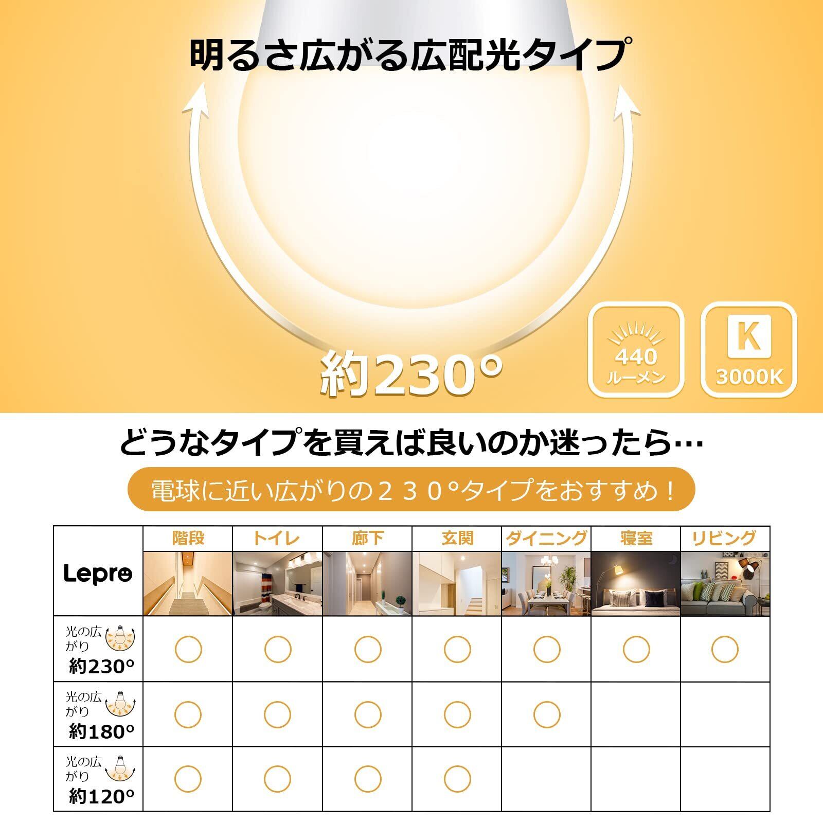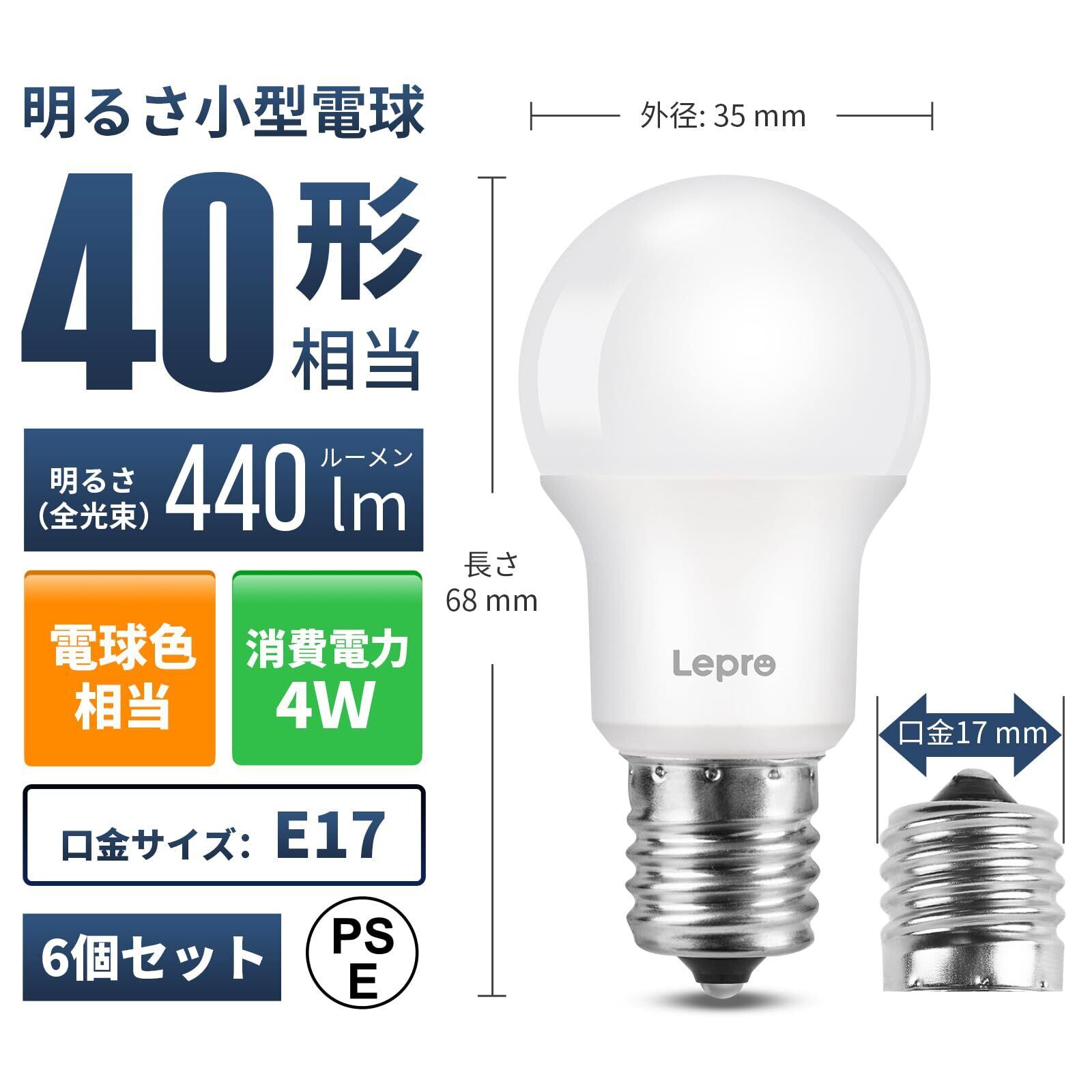 【E17】Lepro LED電球 E17口金 40W形 6個 440lm 電球色 3000K 非調光型 ミニクリプトン ミニランプ形電球 広配光タイプ 高演色性 PSE認証済み 密閉器具対応 省エネ キッチン 台所 トイレ リビング ダイニング 脱衣所 寝室 廊下 玄関照明用 小型電球