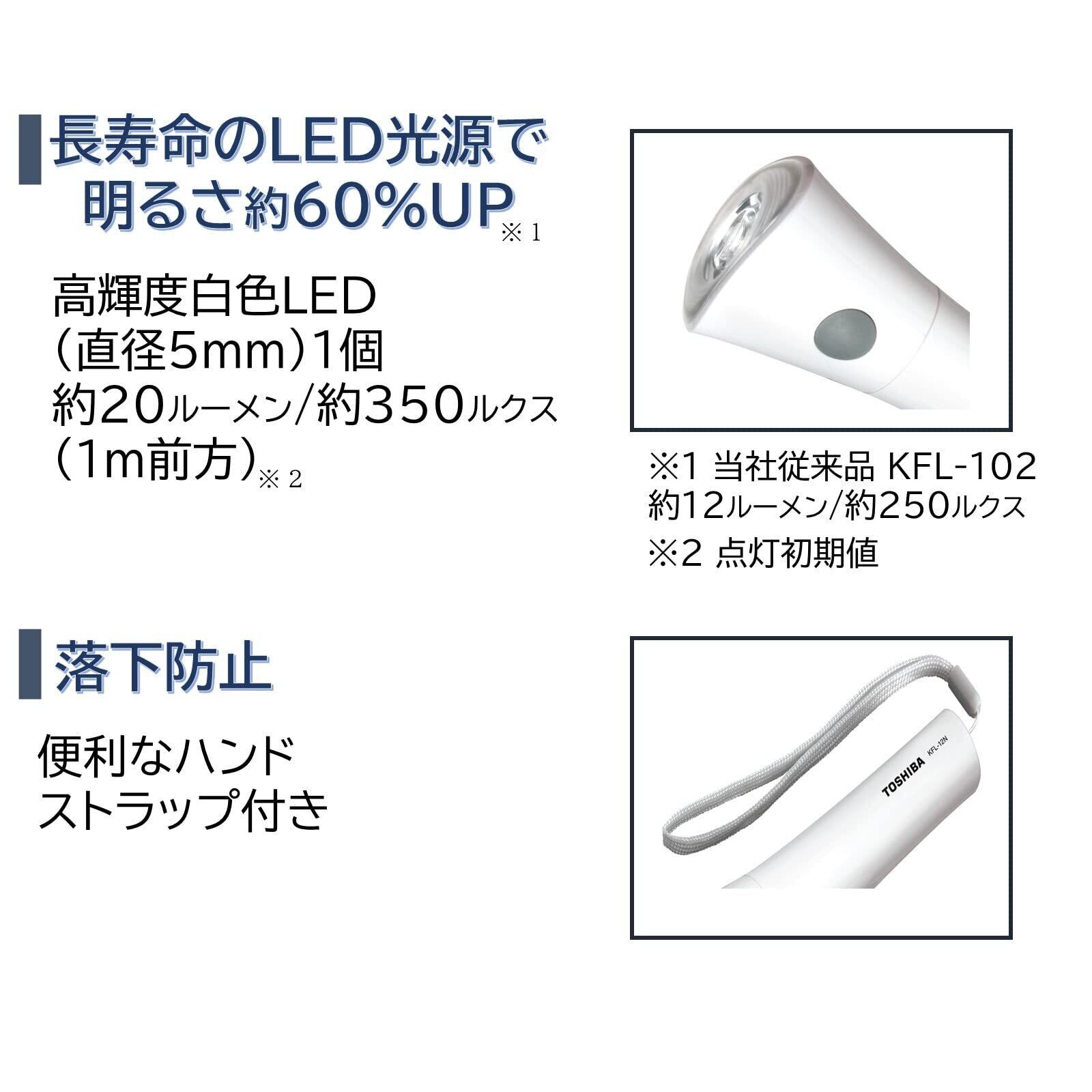 東芝(TOSHIBA) LED懐中電灯 防滴構造(JIS IPX2) 消し忘れ防止湾曲レンズ設計 ストラップ付き 単1形2本用 ECOパッケージ KFL-12N(ECO)