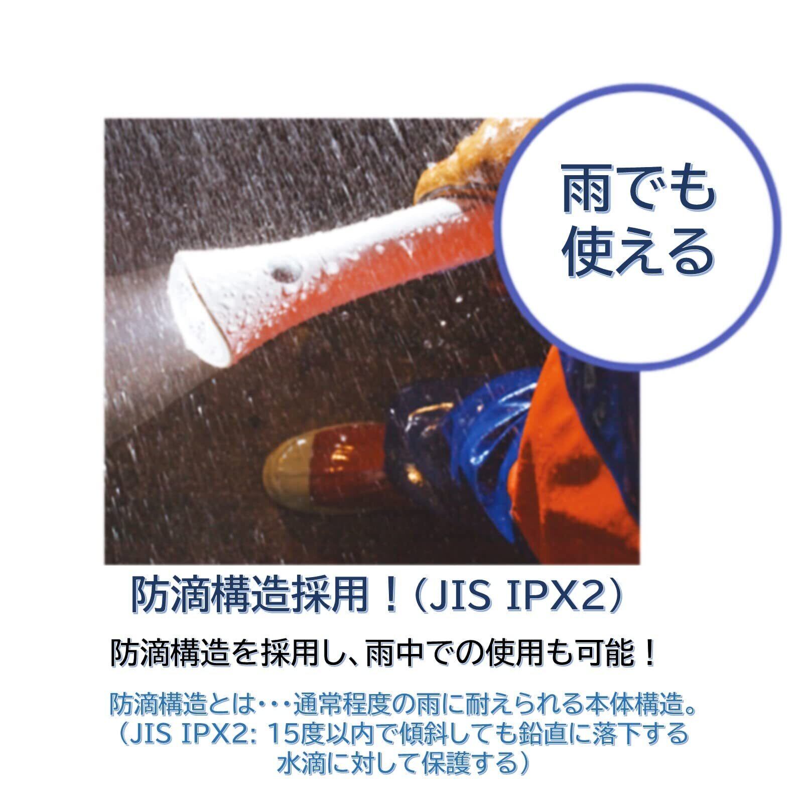 ●雨中でも使える防滴構造(JIS IPX2) ●転がりにくい楕円形ボディ ●消し忘れを防止する湾曲したレンズ ●便利なハンドストラップ付き