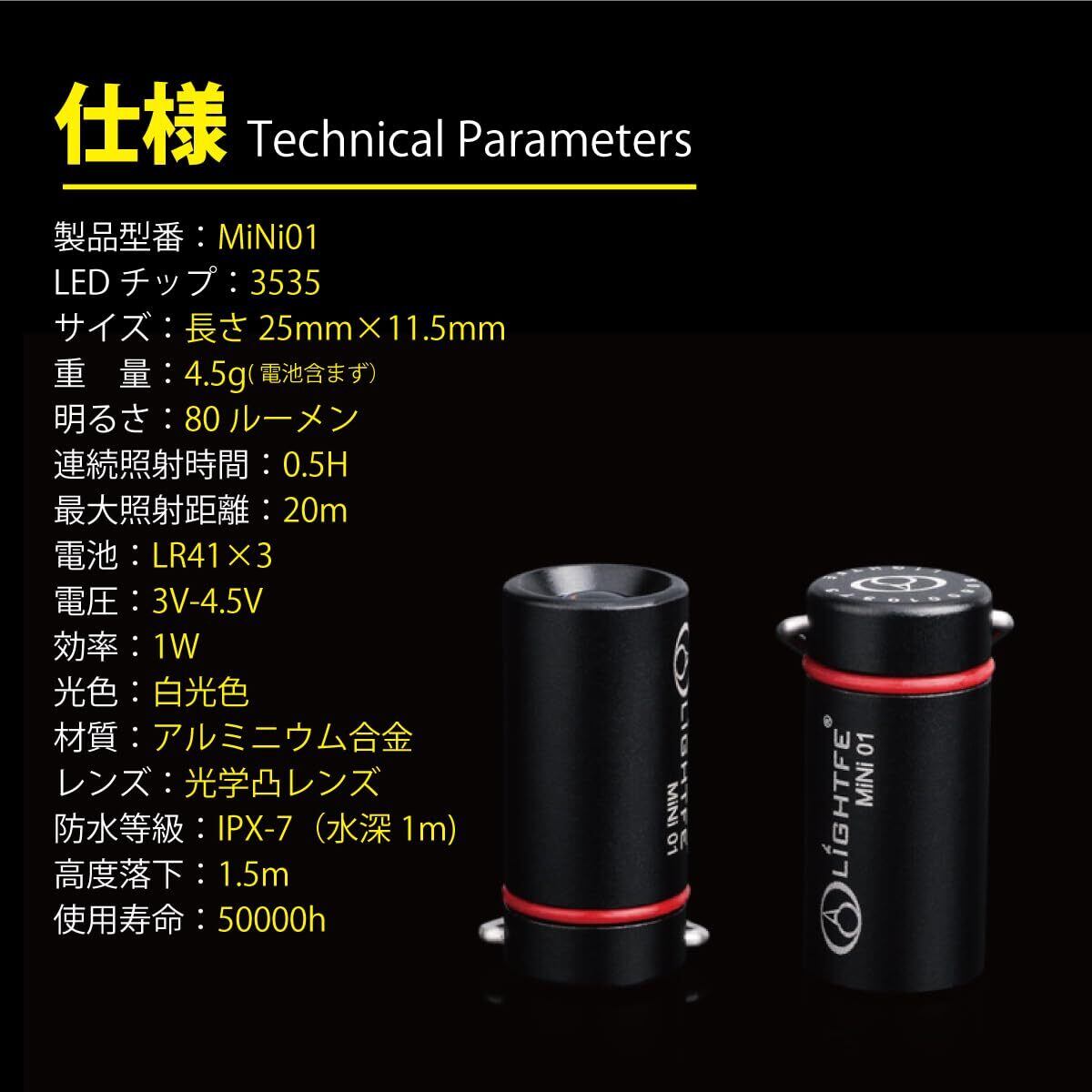 【小型・軽量】世界最小サイズのLED防水ライトです。わずか4.5g!!超軽量・超小型なスリムデザインなのでキーホルダー等に装着しても便利です。