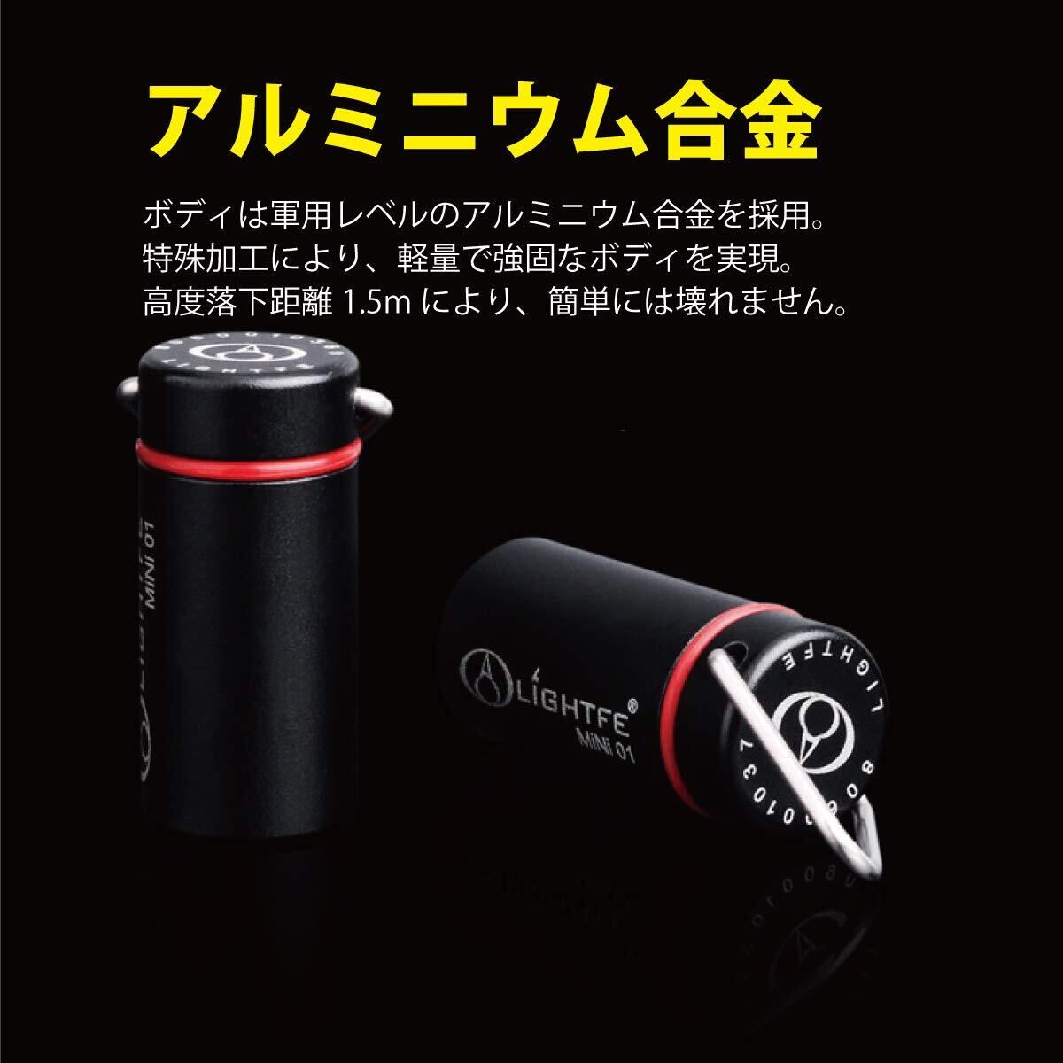 FUJIMORI LED キーホルダー 懐中電灯 ライト 小型 軽量 防水 省エネ 強力 輝度 軍用 停電 防災 対策 LEDライト 完全防水 超小型 超軽量 弾丸 ミニライト (ブラック)
