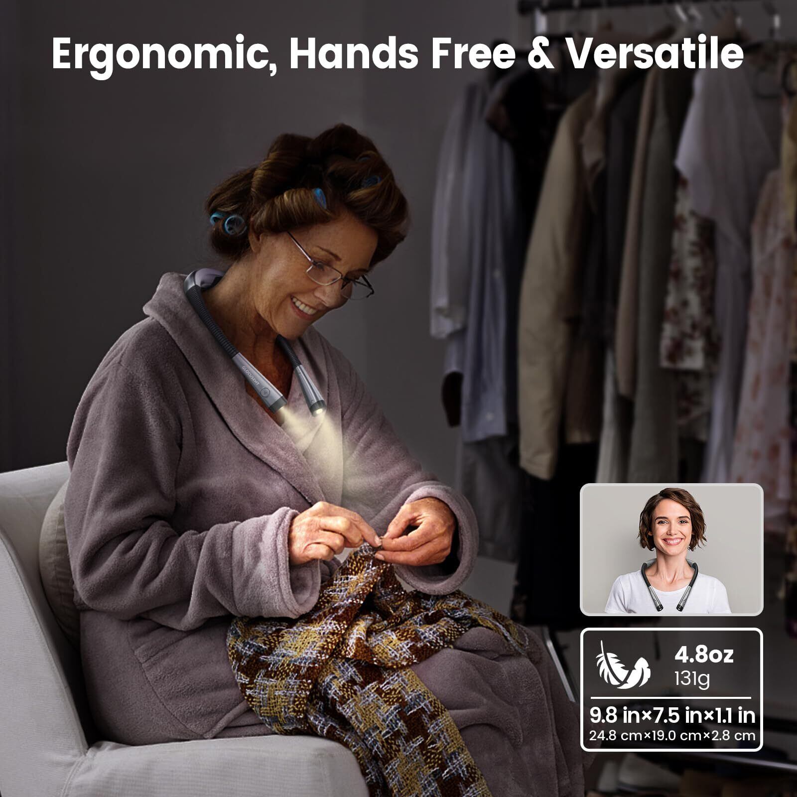 【目に優しいと人間工学デザイン】優良なLEDビーズにより青色光と点滅の現象がないです。目をよく保護することができます。それに、製品のアームはしなやかで調節可能なので、使用時最も快適な角度を得ることができます。重さはわずか131gで、首にかけて両手が自由に使える、便利なハンズフリーライト。