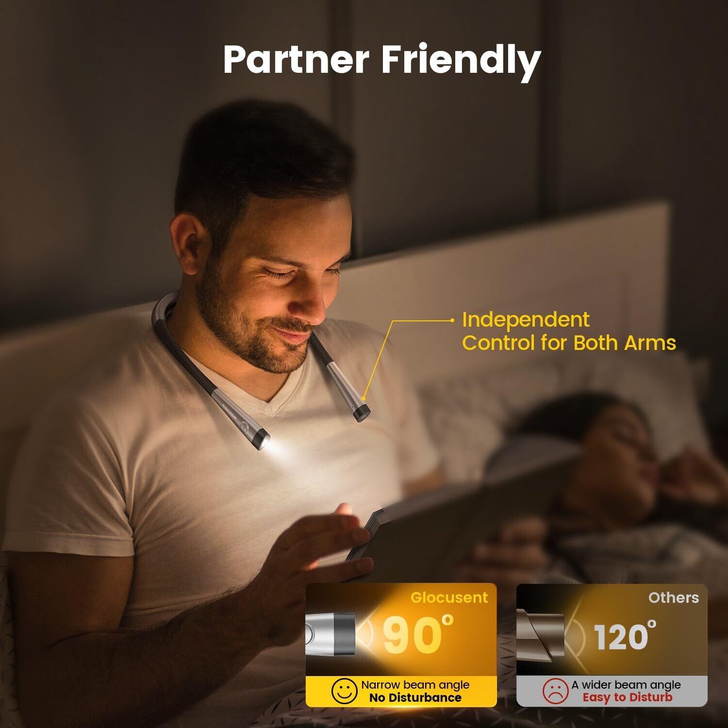 Glocusent LED ネック読書灯 ベッドでの読書用 アンバー 3色 明るさ調節可能 充電式 長持ち 読書/編み物/キャンプ/修理に最適 (グレー)