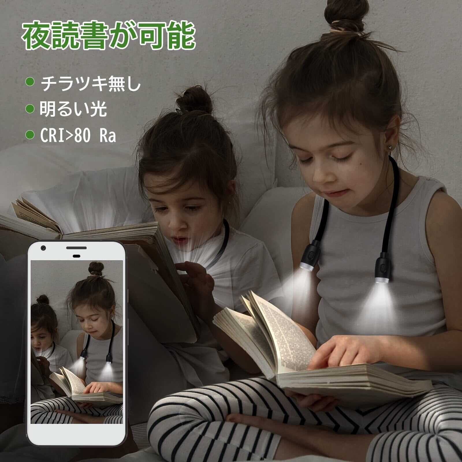 LEDBOKLI ネックライト ブックライト led読書ライト 6500-7000K 3段階調光 800mAh 首掛けライト USB充電式 読書/散歩/停電/針編み/防災用 ブラック