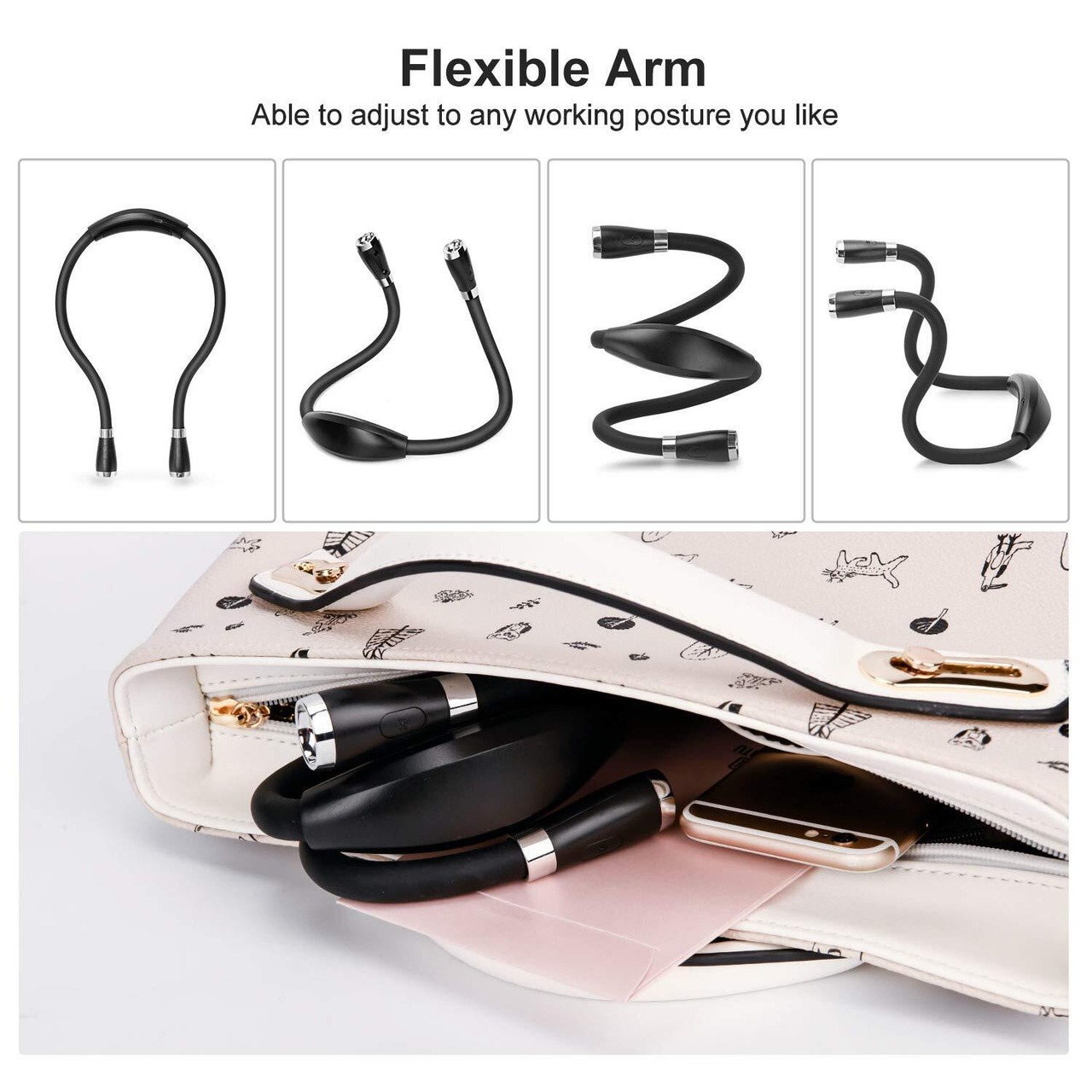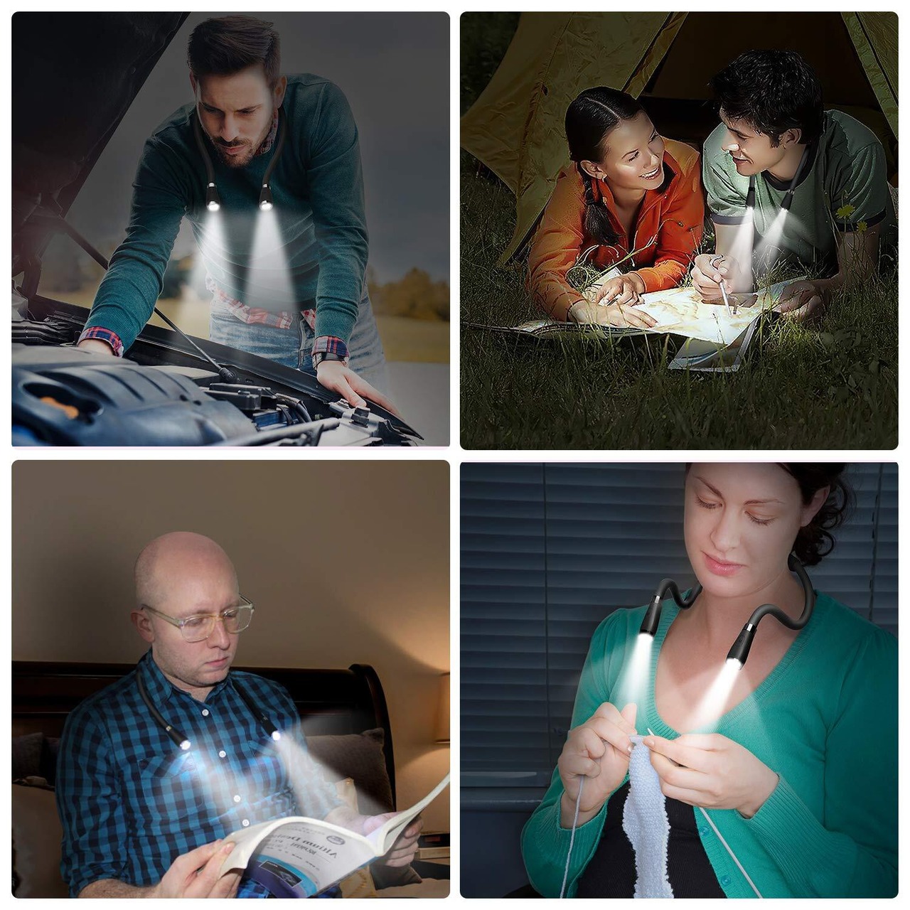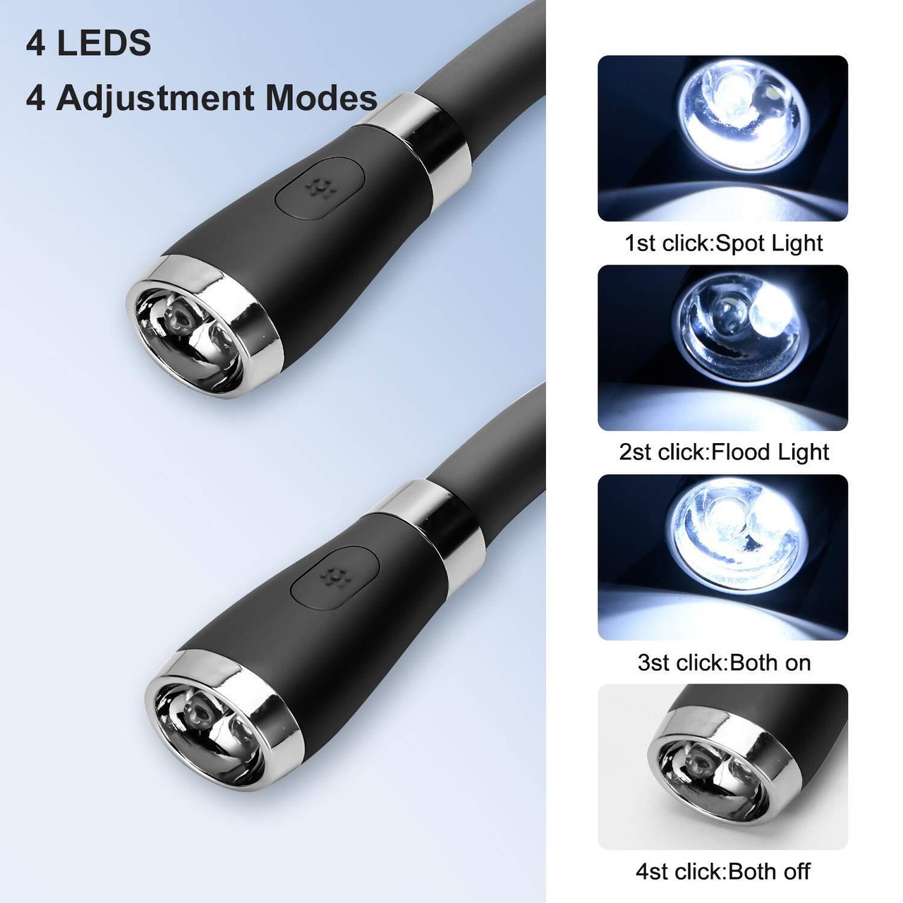 LEDネックブックライトUSB充電式、ハンズフリー、4つの超高輝度LED電球、3つの調整可能な明るさ、ベッドでの読書、編み物、ウォーキング、ジョギング、夜の修繕に最適( ブラック )