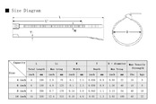 サイズと包装:長さ=200mm,幅=3.6mm,厚み=1.1mm,最大結束長さ=170mm,最大結束直径=54mm,さいだいひっぱりつよさ=40lbs/18kgs。ラップ=300個入