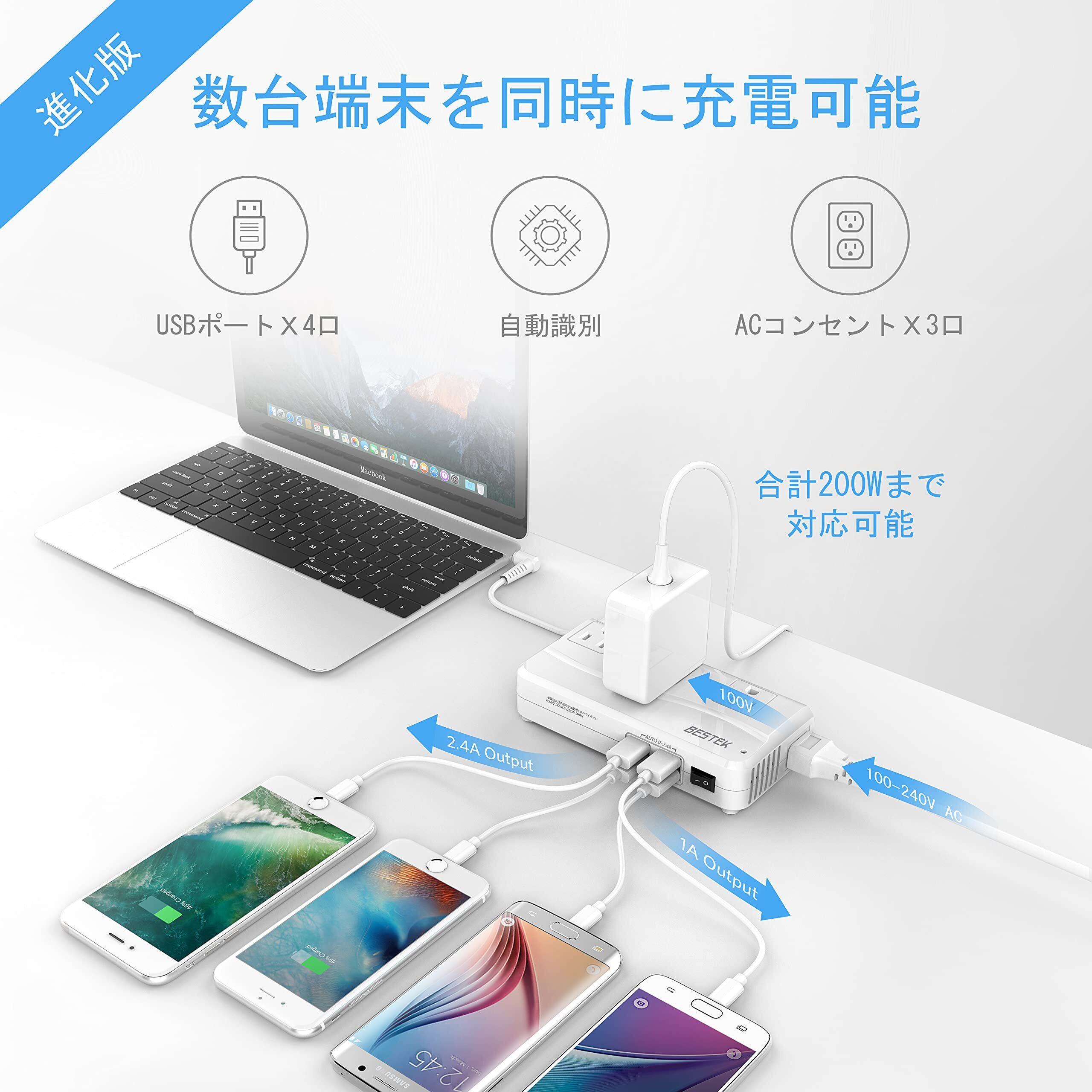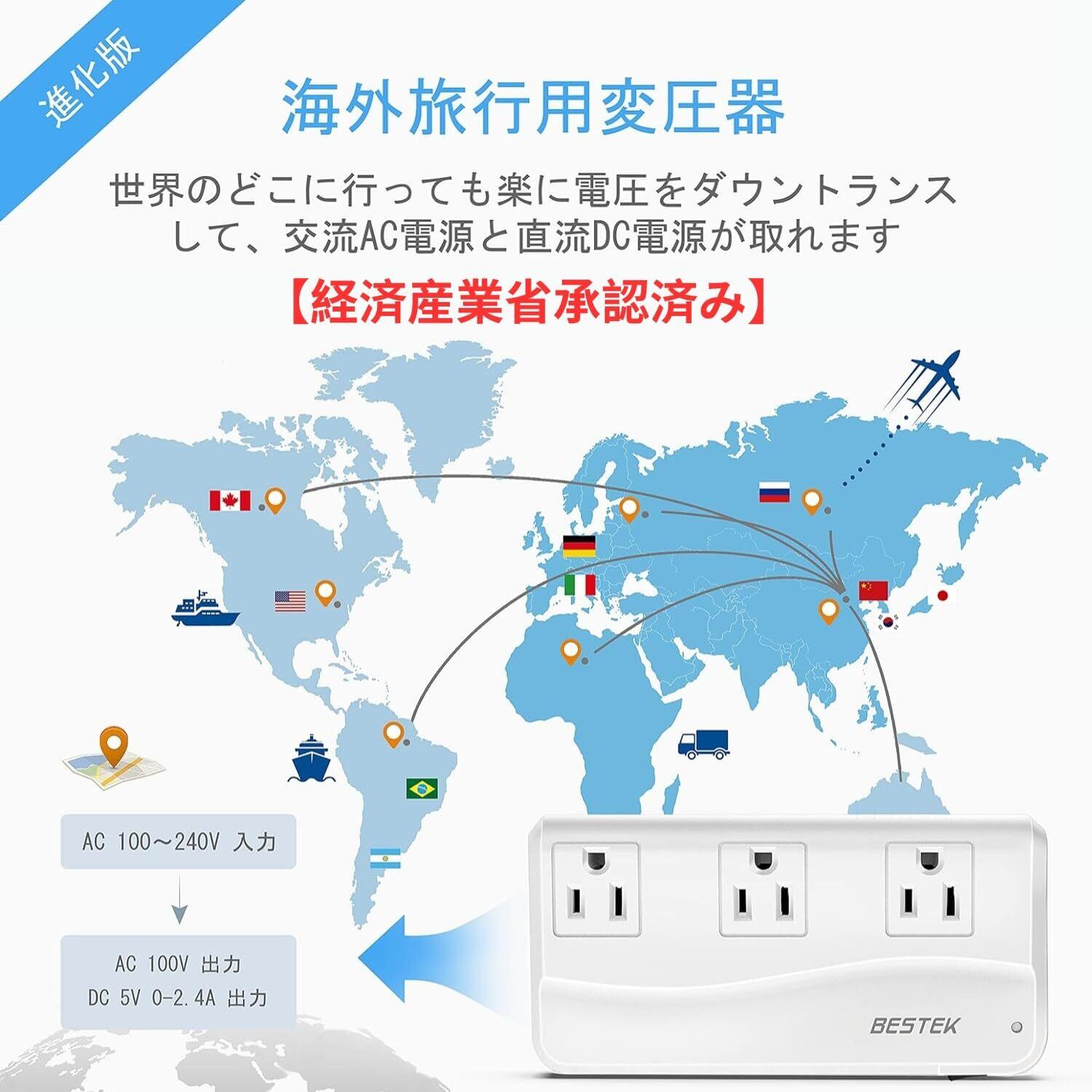 BESTEK 【経済産業省承認済み】 海外旅行用変圧器 海外コンセント 変圧器: 変換プラグ BF A O タイプ 付き C タイプ プラグ 搭載コード 付き 海外 コンセント 240V 230V 220V から 100V 降圧トランス 電圧変換器 海外用 変圧コンセント ダウントランス 降圧器 200W (MRJ201GU)