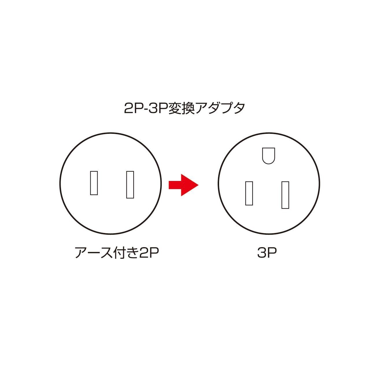 2Pアース端子付きプラグを3Pプラグに変換することができます。アース接続端子付きです。
