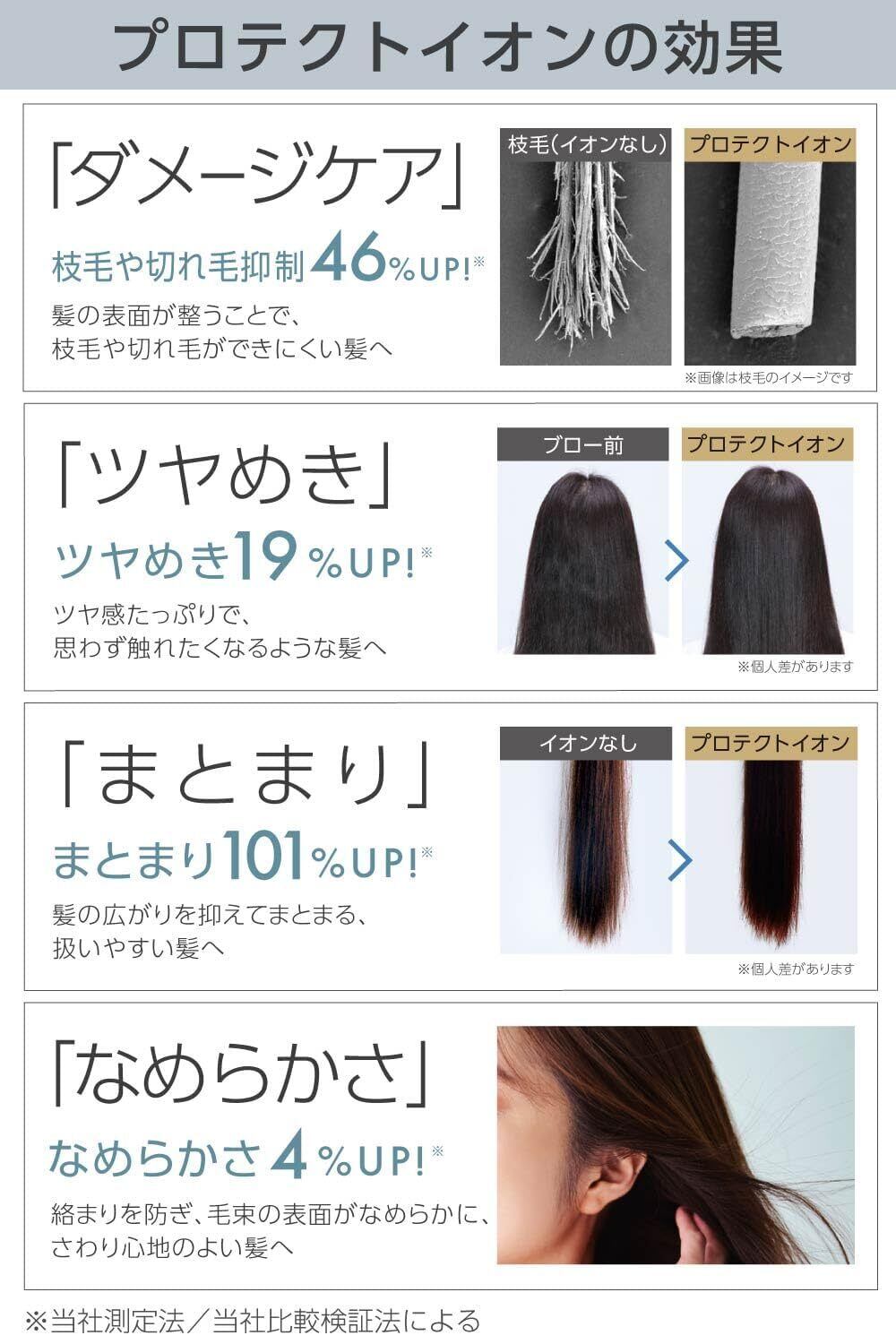 乾燥や髪摩擦による静電気の発生が、大風量ドライヤーの課題。テスコム独自のプロテクトイオンが大風量ドライヤーの課題を解決し、ワンランク上の美髪に導きます。