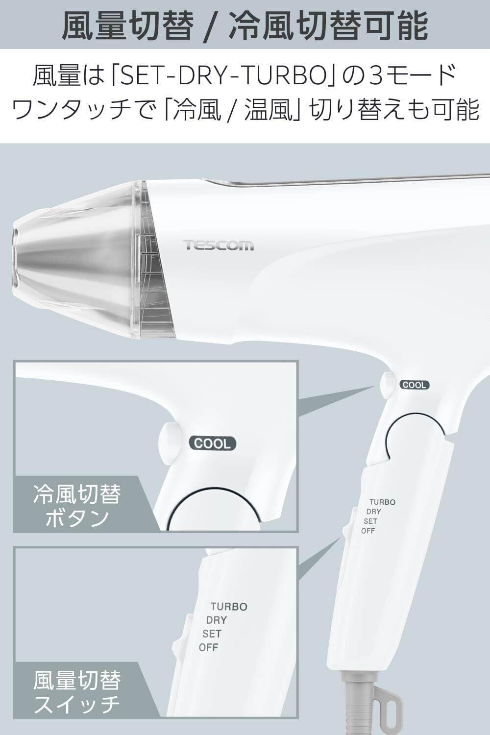 テスコム 速乾 Speedomシリーズ史上最軽量(※2) テスコム独自のプロテクトイオンが、美髪に導きます。 ※2 2022年11月、当社Speedomシリーズのドライヤーにおいて。