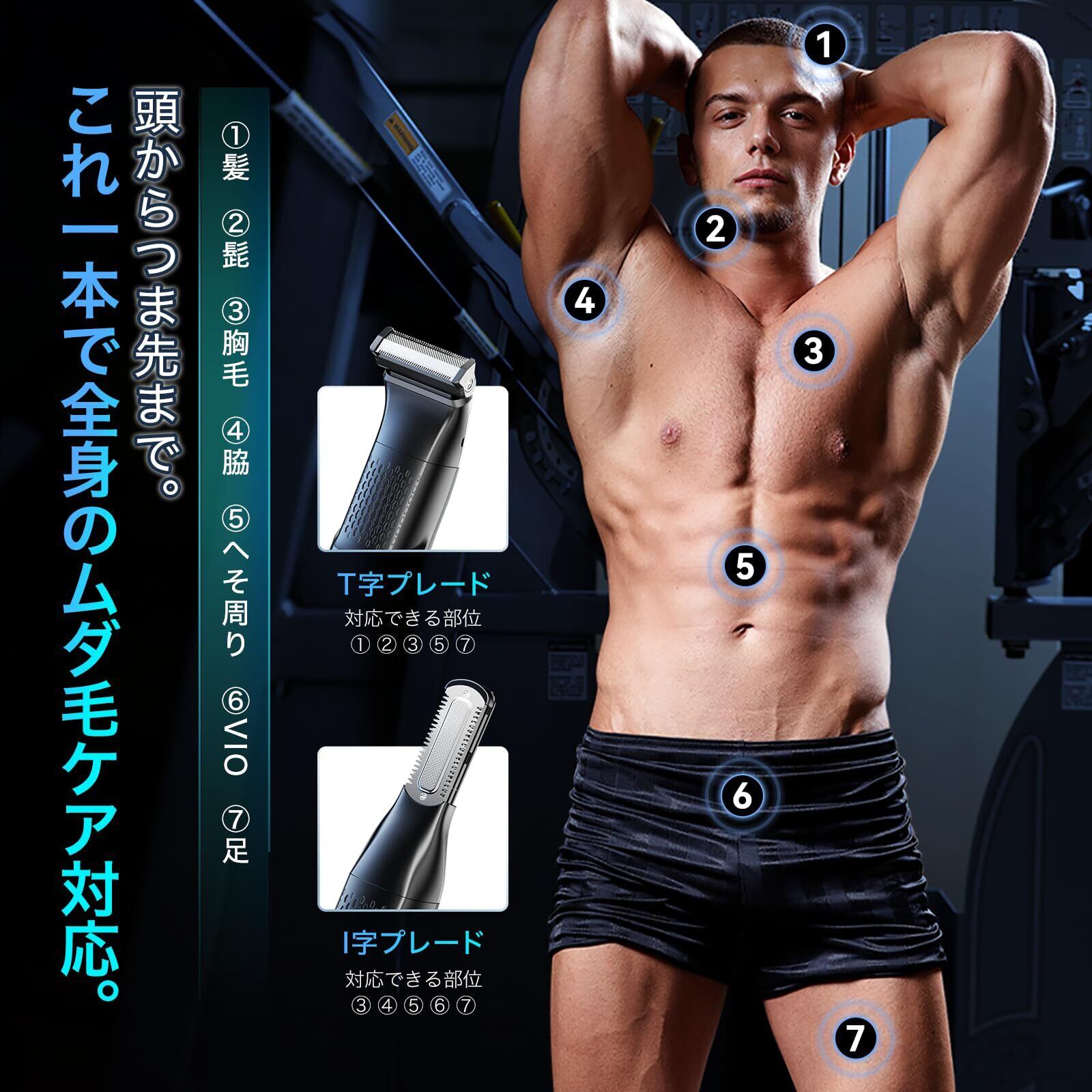 ▶全身のムダ毛処理に適用◀えりあし・あごひげ・もみあげ等に、腕や脚の体毛はもちろん、胸や背中といった広い範囲に使用する電動シェーバーです。VIOゾーンなどデリケートな部位にも使えます。