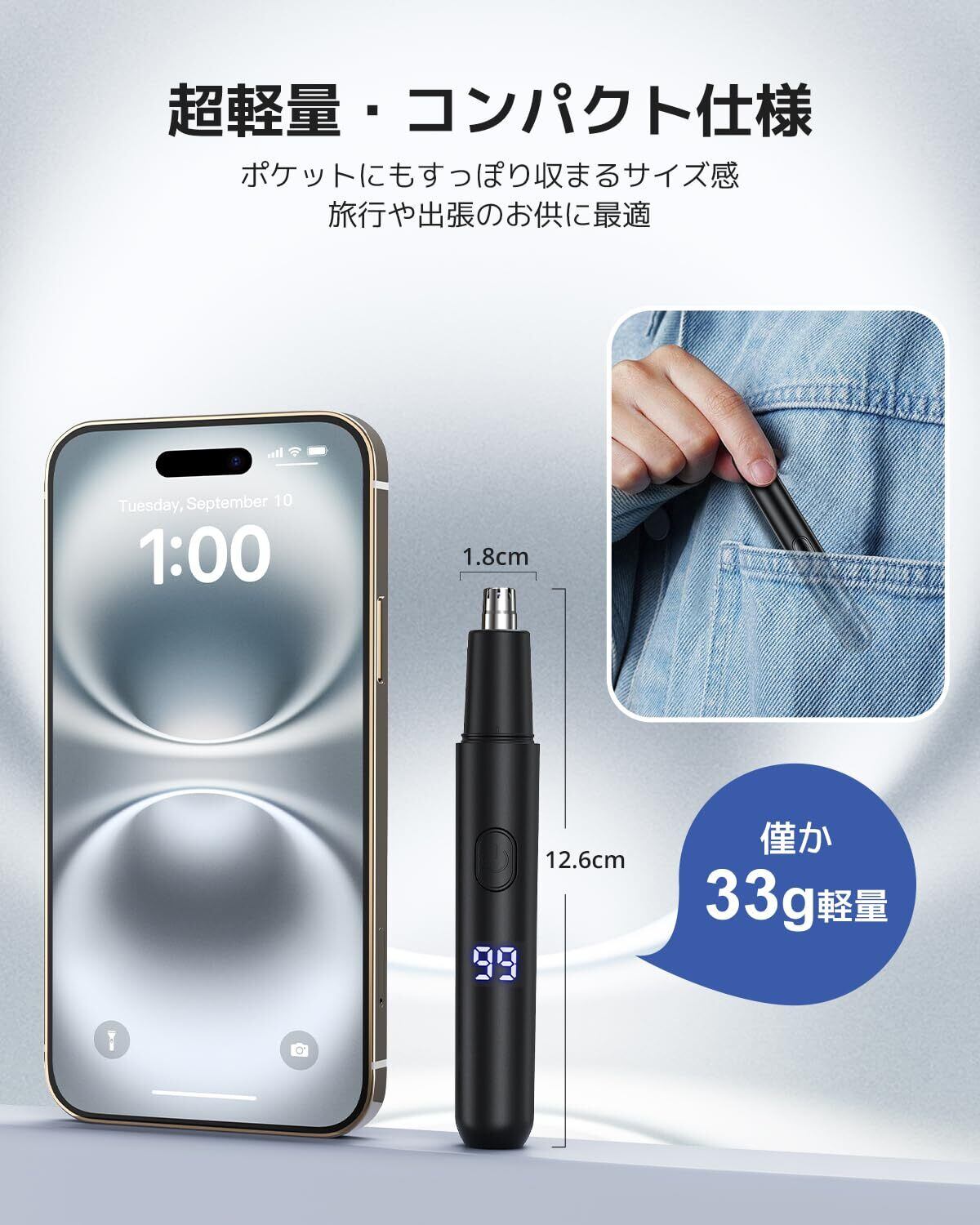 ✈️【コンパクト設計・持ち運びに便利】ポケットサイズのコンパクトな設計で、ポーチやバッグにすっきりと収まります。外出先でもサッと取り出してお手入れができるため、急な用事やデートの前にも便利です。軽量で、持ち運びに便利なサイズ感が魅力で、忙しい日常や旅行先でも美しい眉を保てます。デザイン性と利便性を兼ね備えた剃眉器は、どこでも活躍するアイテムです。
