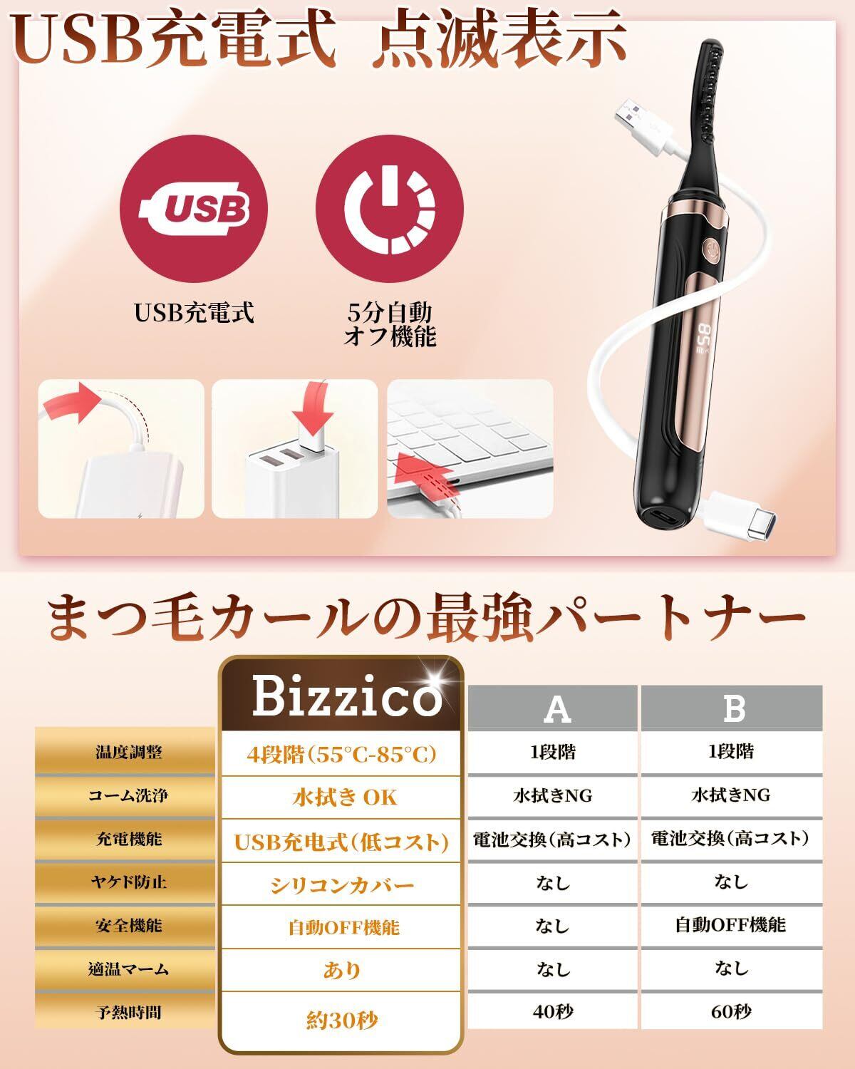 【温熱効果で作る究極の美カール】2024年最新技術を採用し、日本人女性のまぶたのカーブのために開発されてホットビューラー。人間工学設計に基づいた弧型コームで、アイラインに合わせて上下のまつ毛にぴったりフィット、両面コームが付き、360°美しいカール、 ヒータータイプのまつげロールサーフは、ヒーターとまぶたとの距離を延長し、皮膚へのダメージやまぶたへの高温接触を避け、安全・素早く繊細なまつげメイクをサポートします。