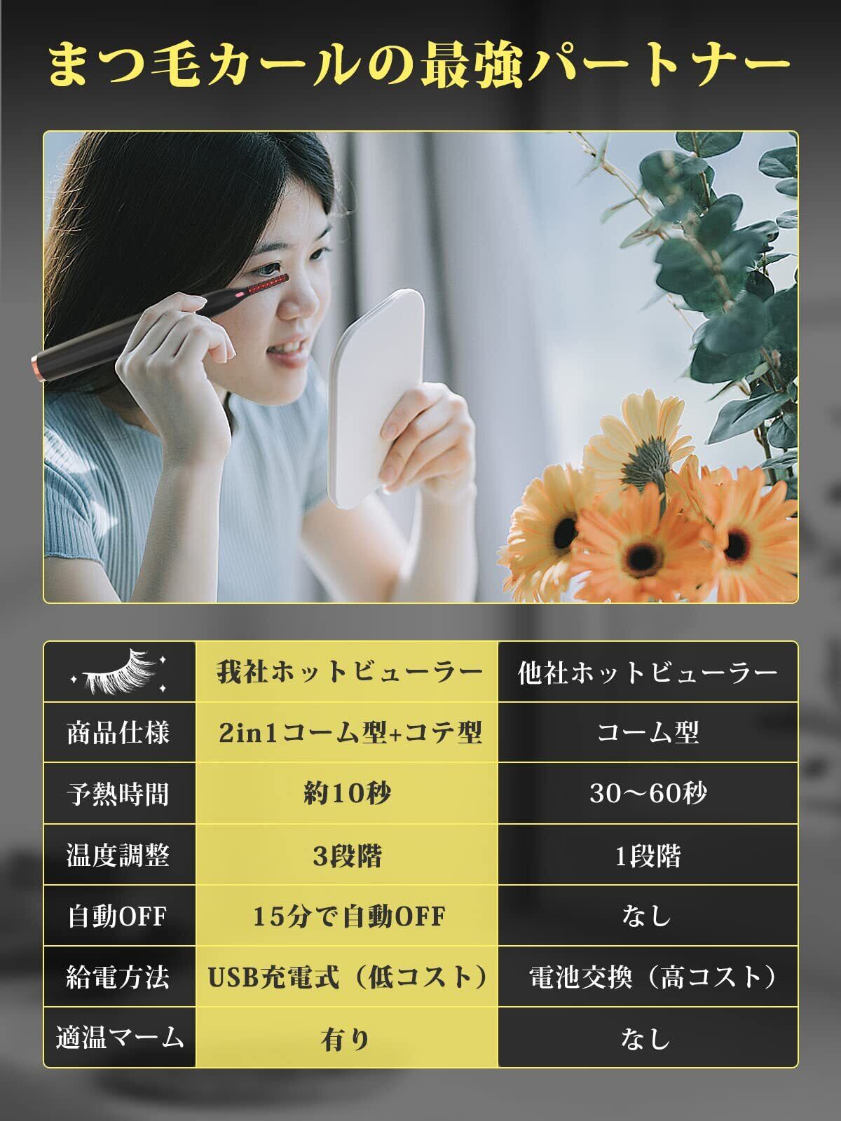 【USB充電&持ち運び便利】電池交換からUSB充電式に改良されたホットビューラー、重さもわずか33gのため、出張・旅行・キャンプ・デート・オフィスなど、持ち運びが楽々、どこでもいつでも魅力的なまつげに!