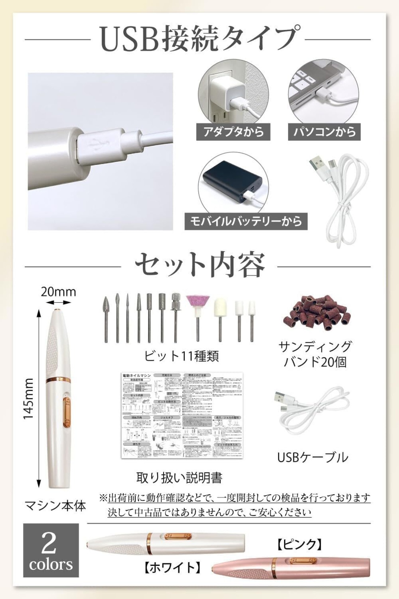 USB充電式で11種類のビットを付属しております。あれこれそろえることなくセルフネイルを始めれます!初心者さんには嬉しいセットとなっております。