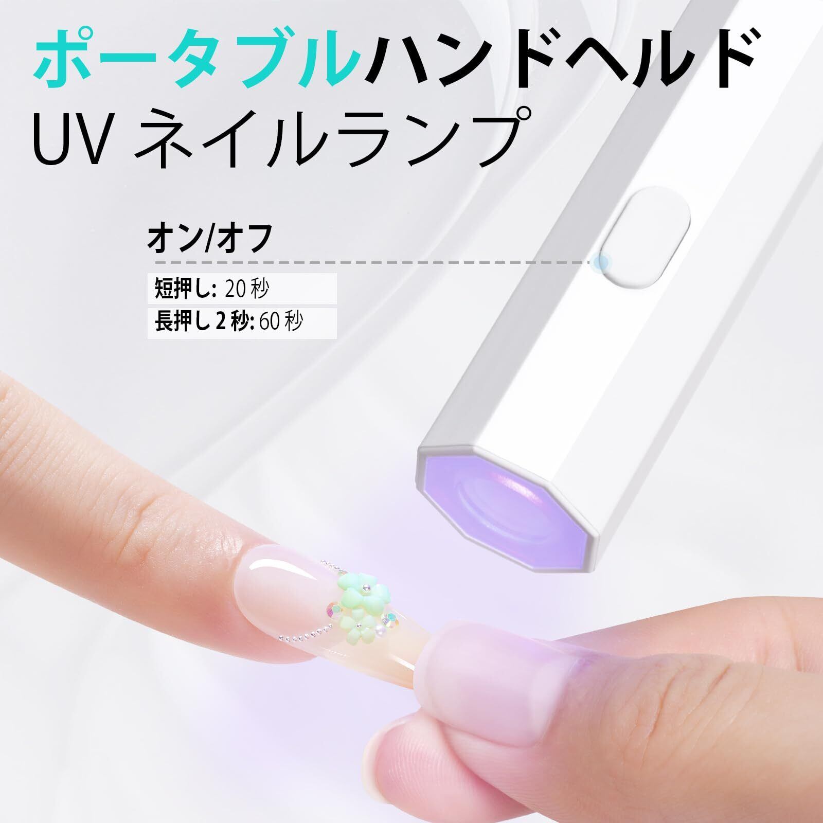 ミニuvライトランプデザイン:爪用ハンドヘルドUVネイルライトは、短めの爪にも長めの爪にも対応できるワンシェイプのランプボディデザインを採用し、ジェル状の接着剤を素早く均一に乾かします。 スリム設計で軽量! 表面は滑らかなスムーズタイプ! 片手にしっかりフィット細かな作業もパッと手軽に。