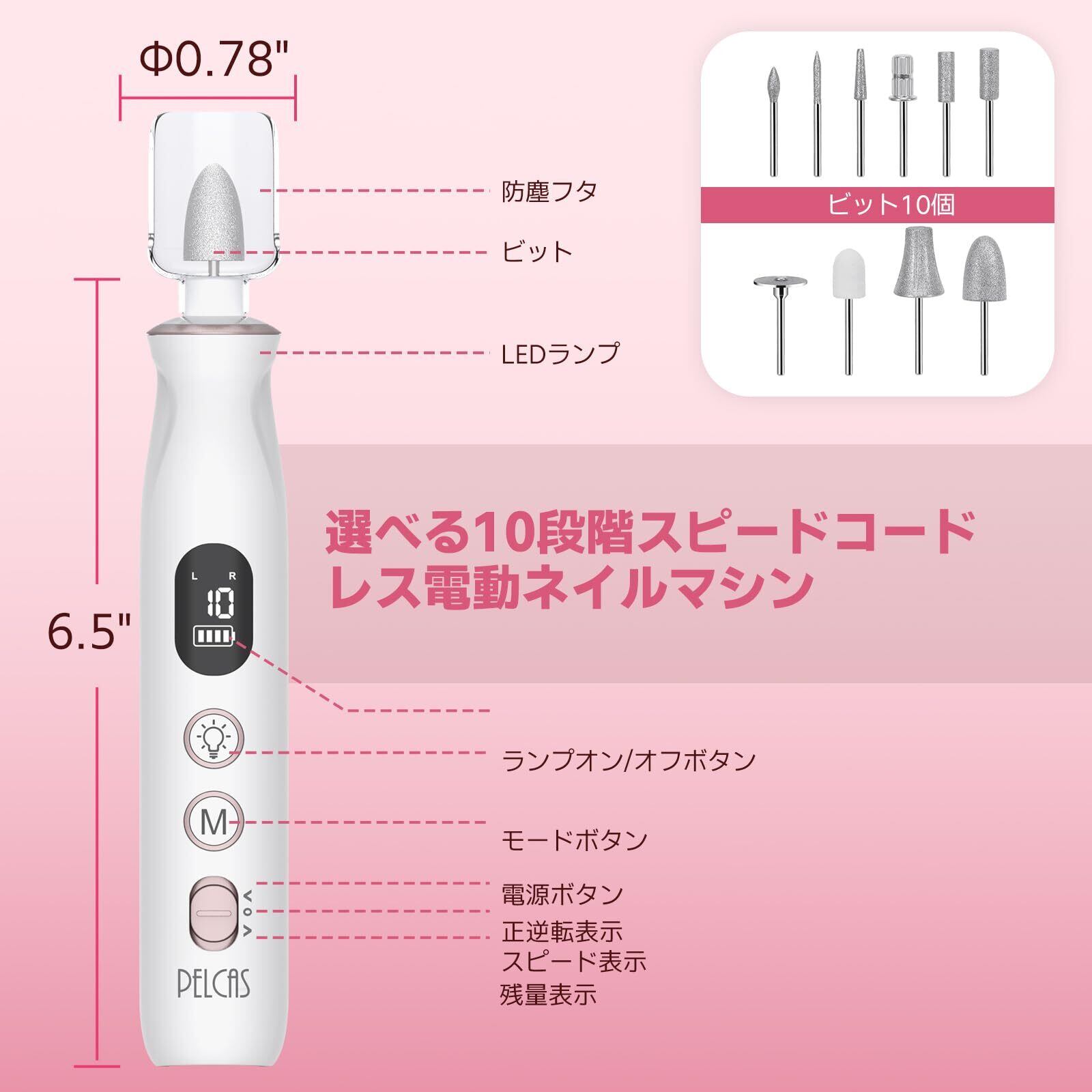 PELCAS電動ネイルマシン 10個のビット ネイルマシーン ジェルネイル オフ キットネイルケアセット 爪磨き