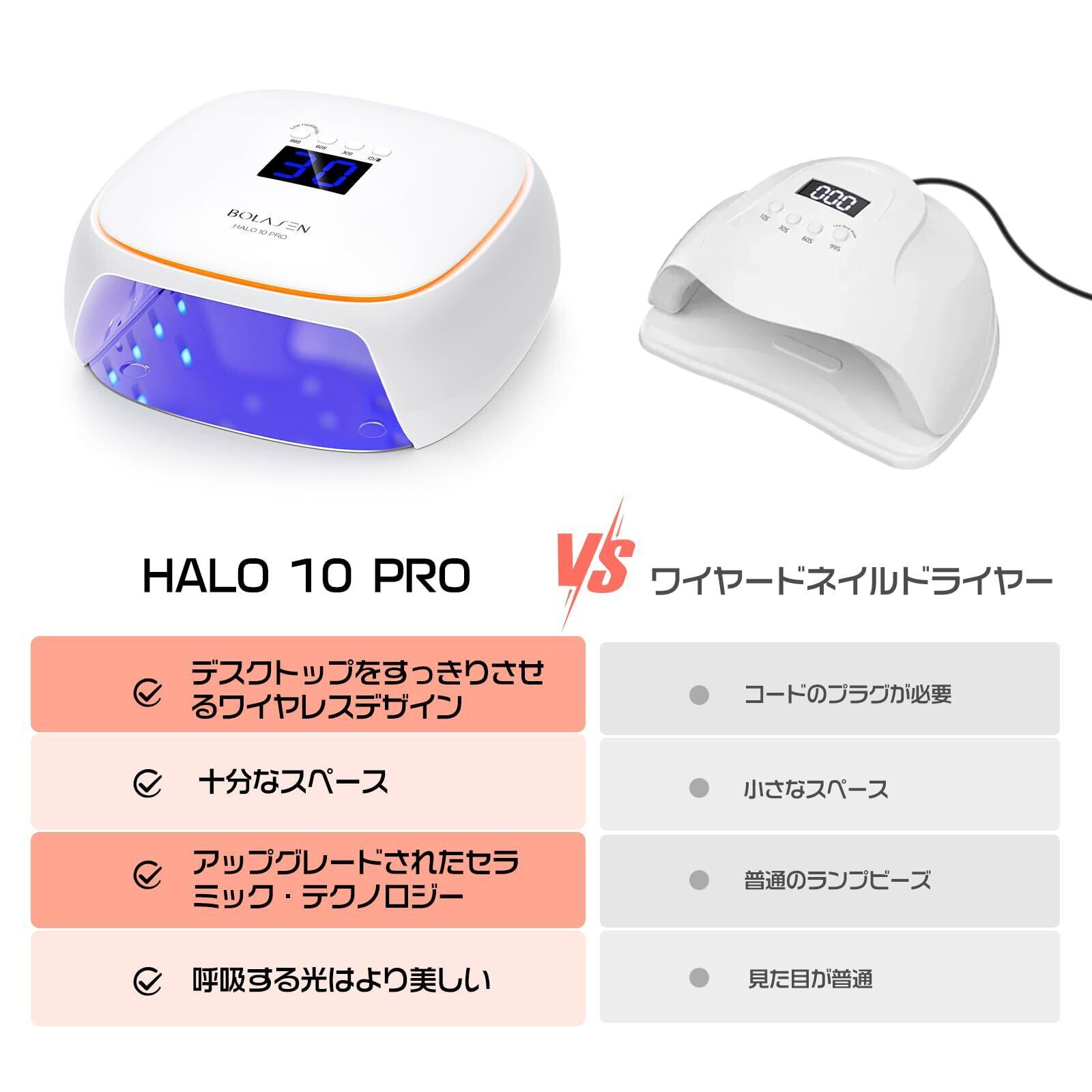 BOLASEN Halo 10PRO コードレス 充電式 UV LEDネイルライト セラミック技術 60W ジェルネイルライト 持ち運びやすい ワイヤレスネイルLEDライト 雰囲気ライト プロ用 硬化ライト