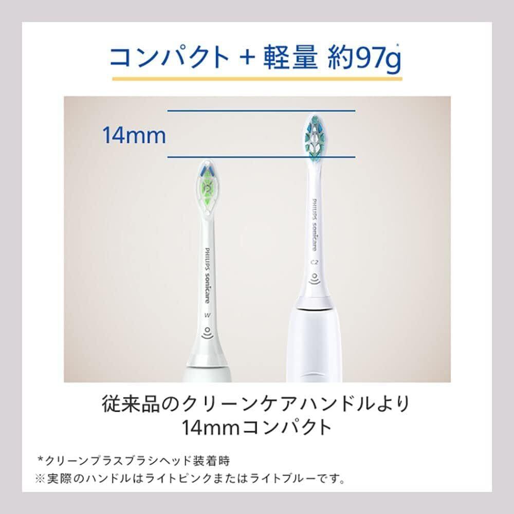 ハンドルデザインは直径(奥行)26mmとスリムで、約97g(クリーンプラスブラシヘッド装着時)と軽量なため、持ちやすく使いやすい電動歯ブラシで初心者にも扱いやすいデザイン