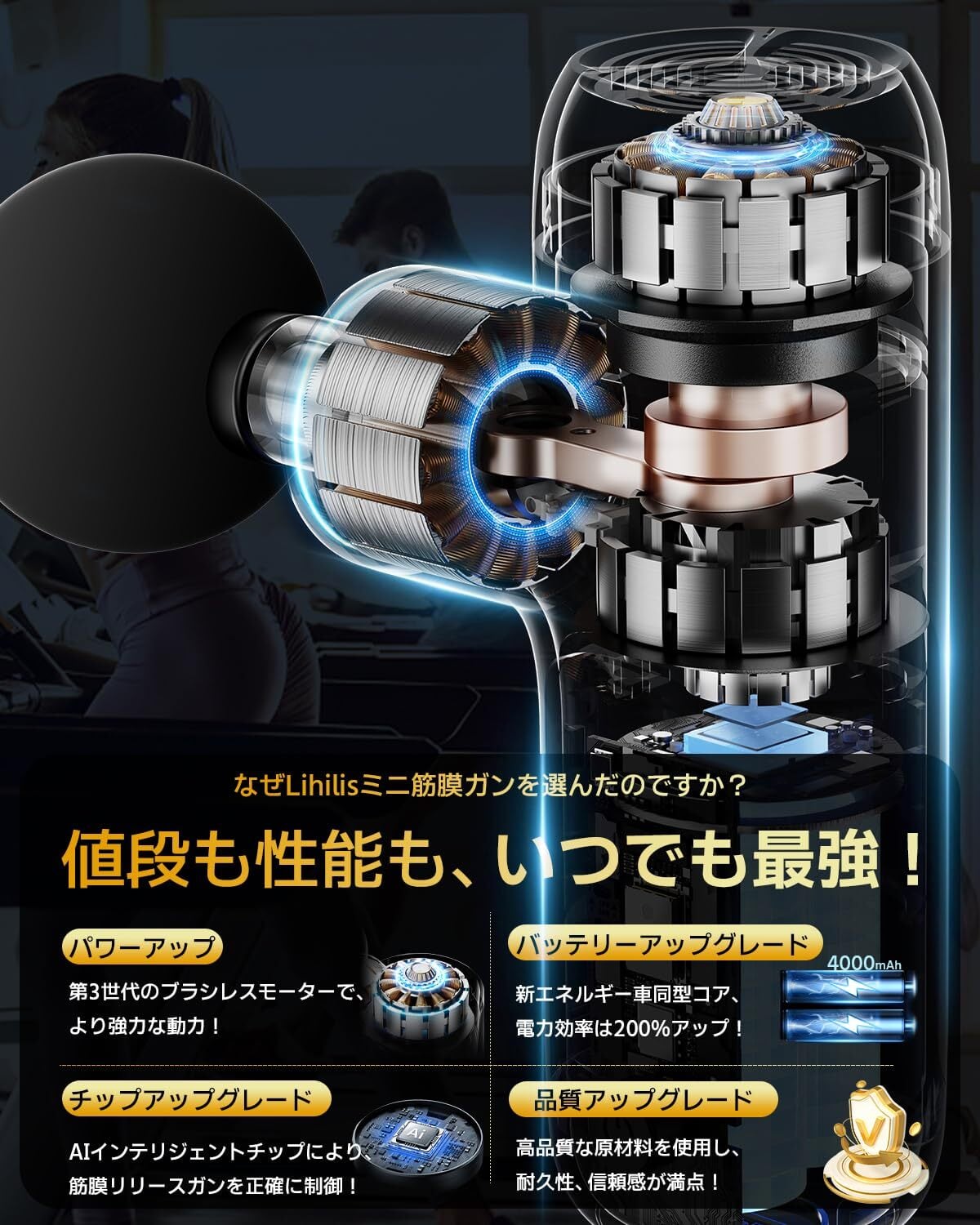 【新世代の筋膜リリースガン! 小さなボディ・驚きのパワー】Lihilis(リヒリス) "ハンディガン"が 、再び業界を席巻する!最先端のブラシレスモーターを採用し、従来品と比べ、電動機の効率が300%向上し、より安定した安全性能が備わっており、使用可能年数も10年に達します。独自の双ベアリング構造でブレにく、安定した振動が奥深くまで伝わります、手を震わせなくなります。スマートフォンよりも小さいサイズで、340gの超軽量で、持ち運びが便利で、誰でも簡単に使えます!
