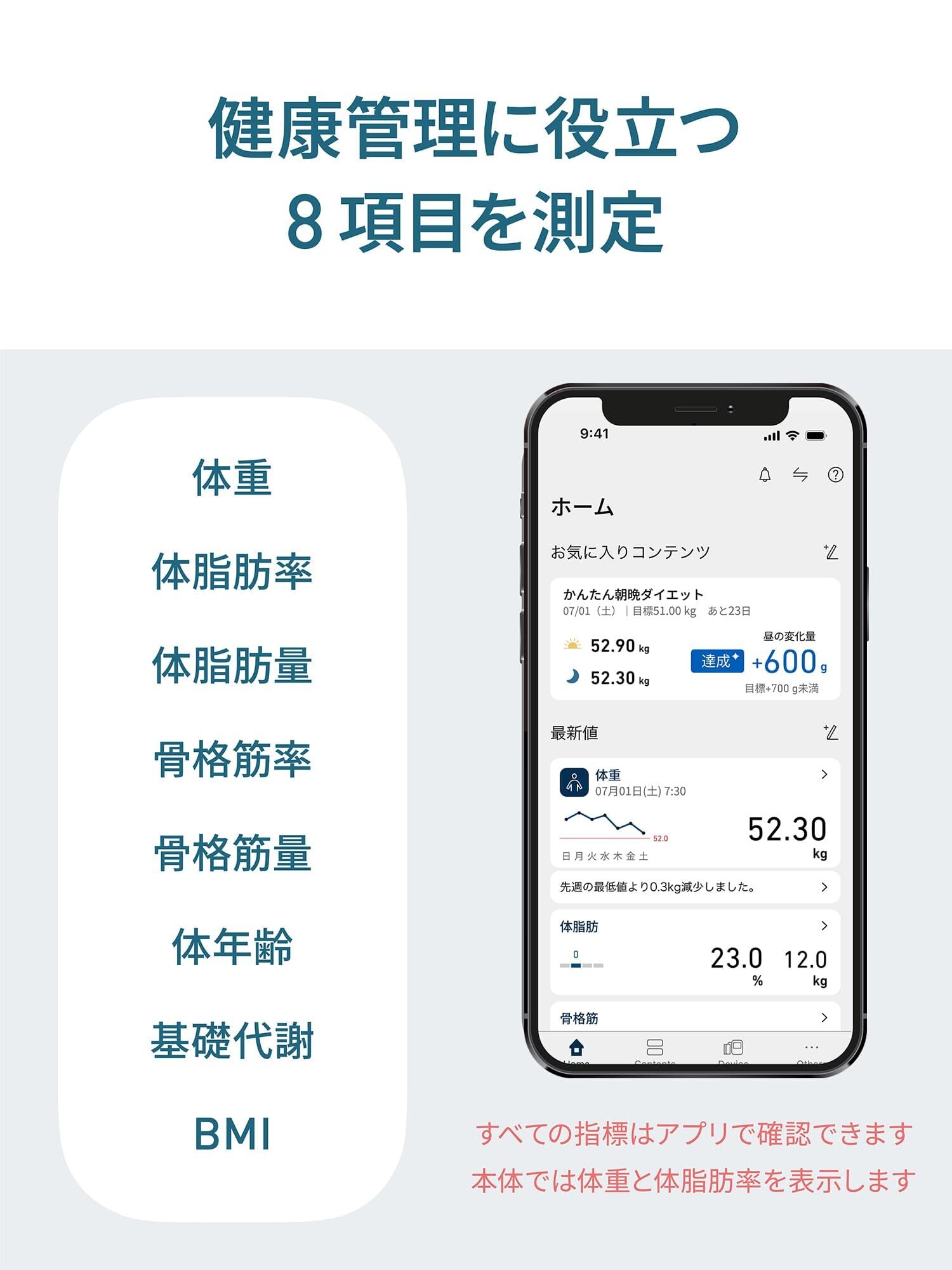 暮らしに溶け込むニュアンスカラーのコンパクトな通信体組成計