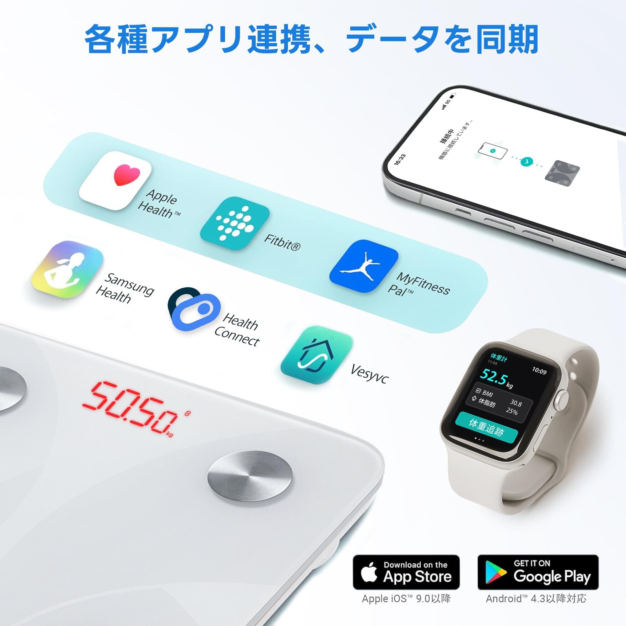 Etekcity 体重計 体組成計 スマホ連動 13項目測定可能 2年品質 体脂肪計 Fitbit連携 スマート 高精度 軽量 日本語対応APP・説明書 FIT8S (ホワイト)
