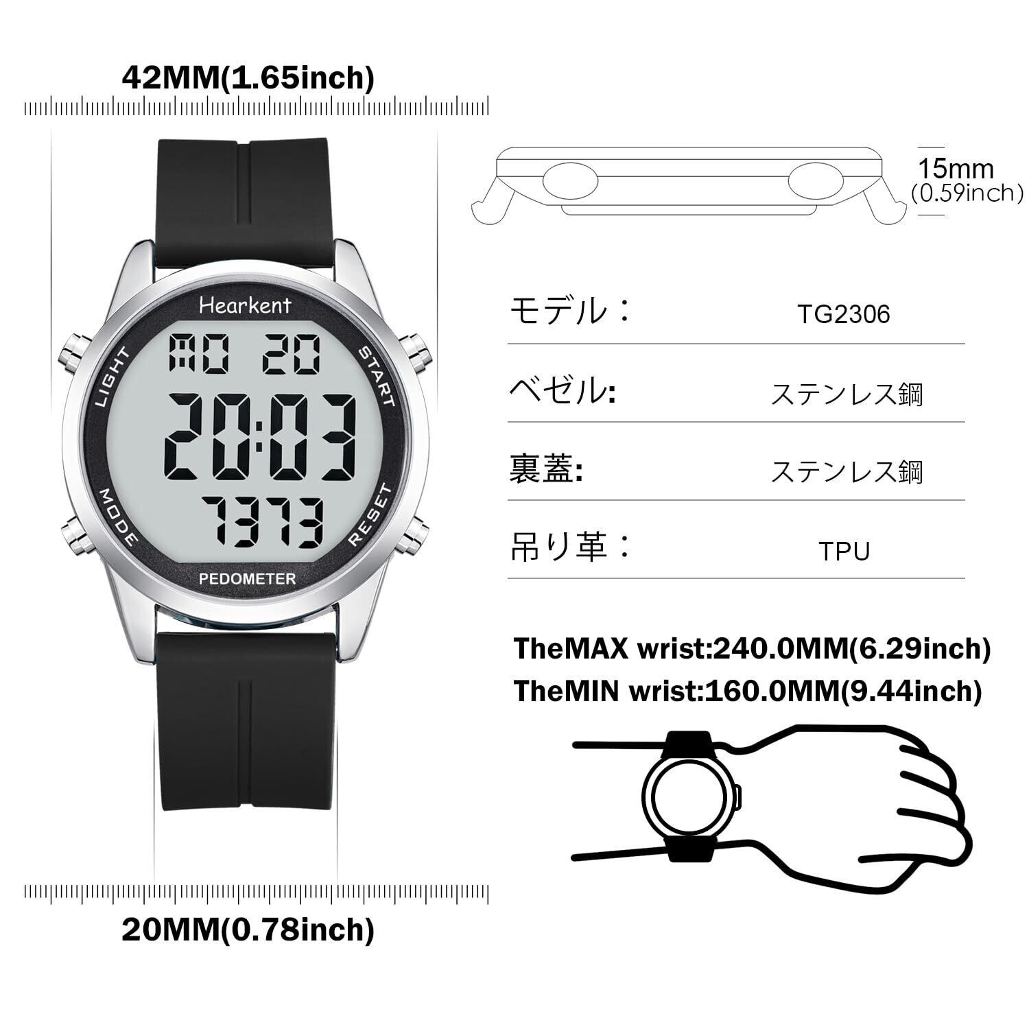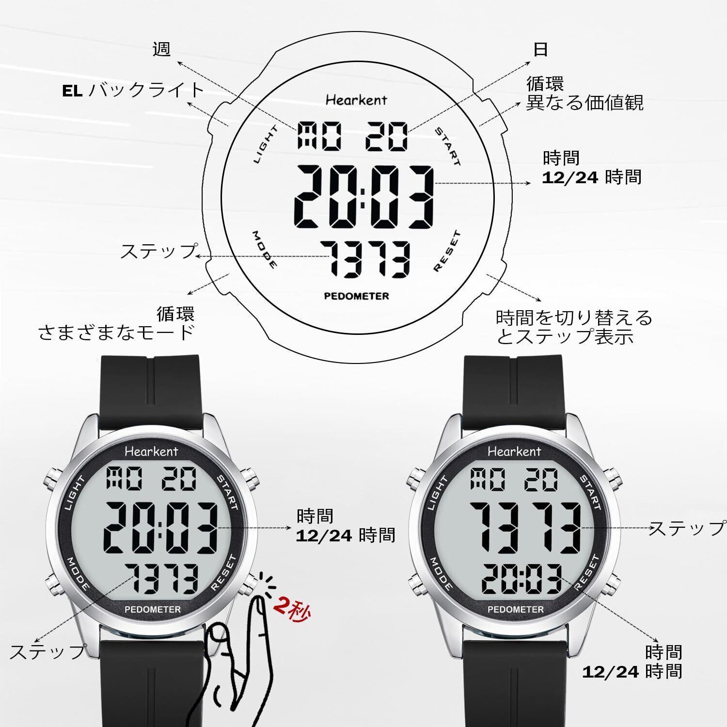 Hearkent歩数計防水腕時計、内蔵時間、歩数、走行距離、ELバックライト、アラーム機能付きデジタルLCDディスプレイ、クラシックレトロ、男性に最適